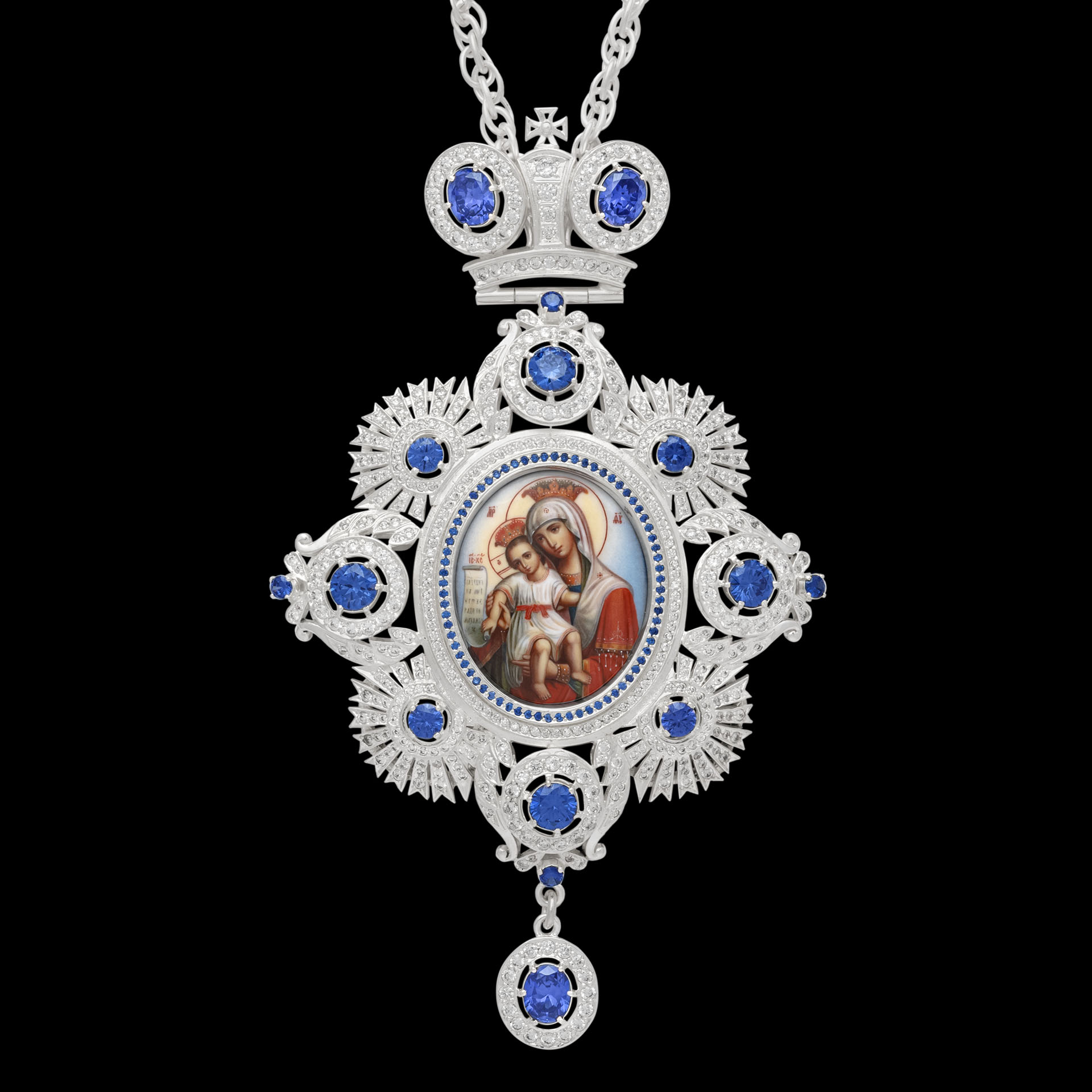 Панагия №1561 / Фианиты деколь / серебрение / Достойно Есть