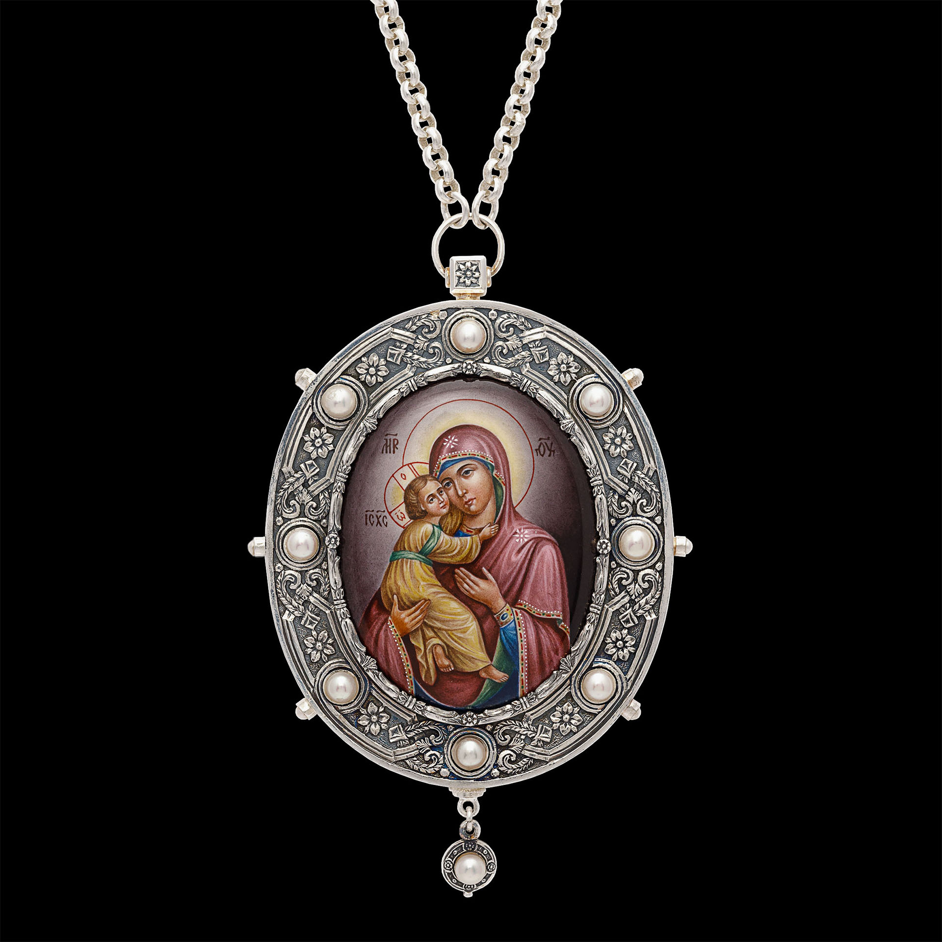 Панагия №1562 финифть серебро Владимирская БМ (УИН)