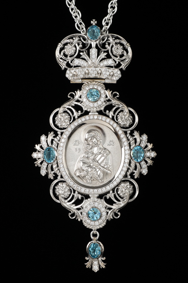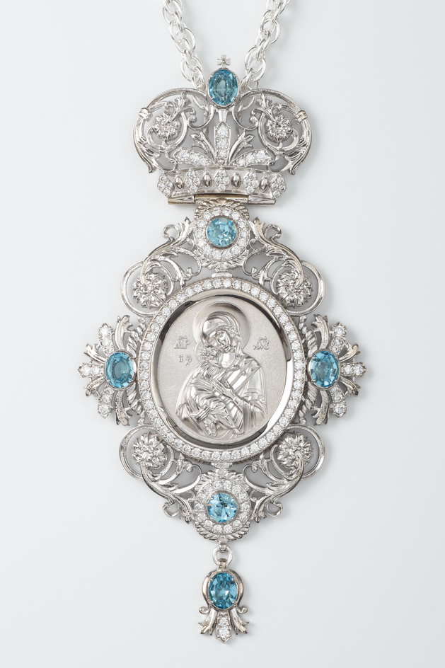 Панагия №189 / Фианиты литьевой лик / серебрение / Владимирская БМ
