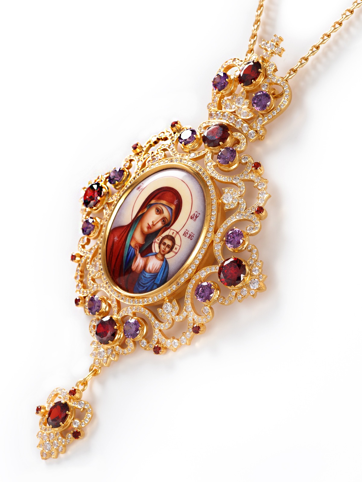 Панагия №193 / Фианиты, финифть / золочение / серебро Казанская БМ (УИН)