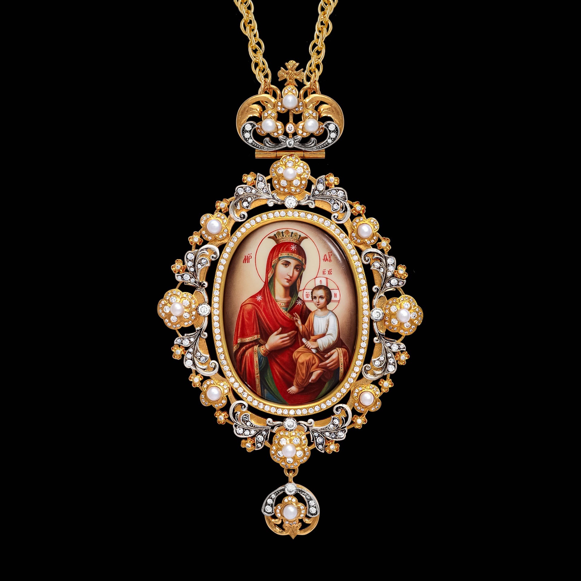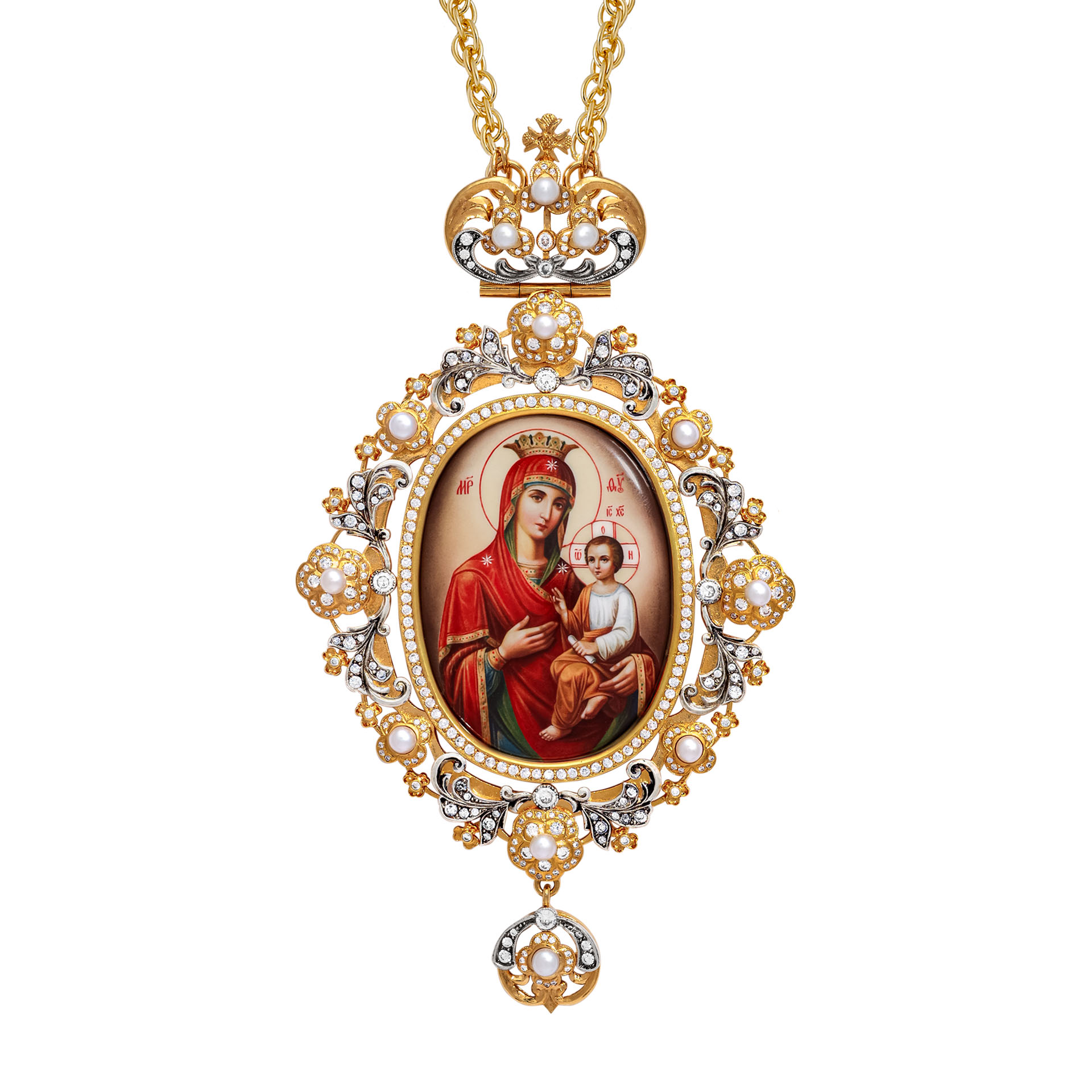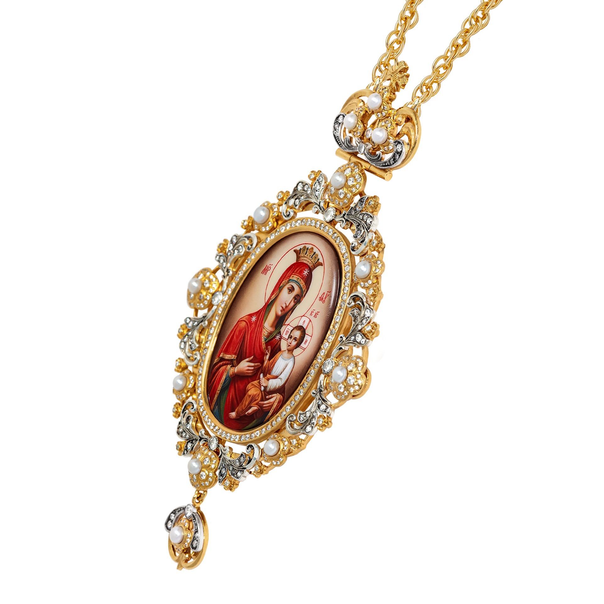 Панагия №212 / Фианиты деколь / золочение, серебрение / Скоропослушница БМ