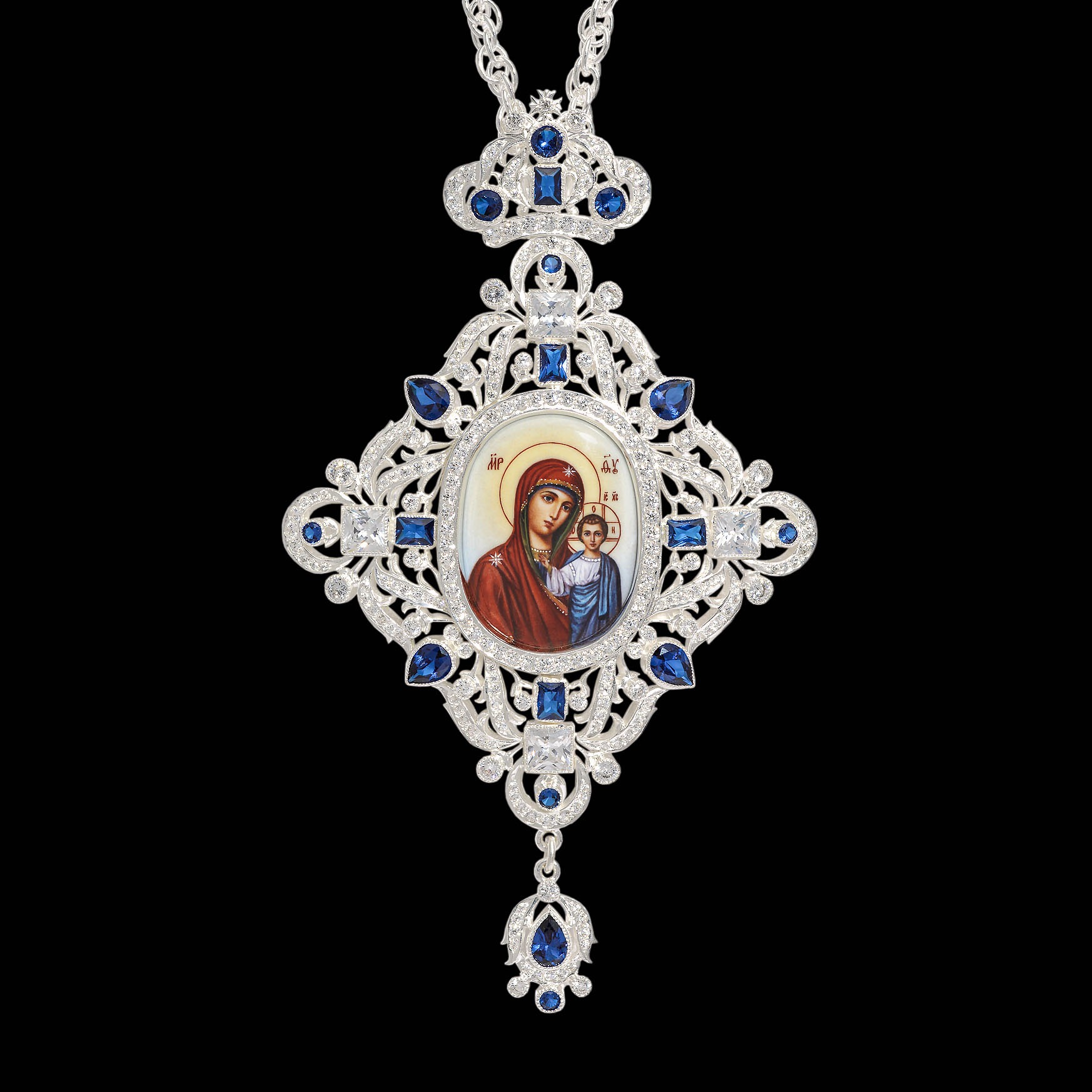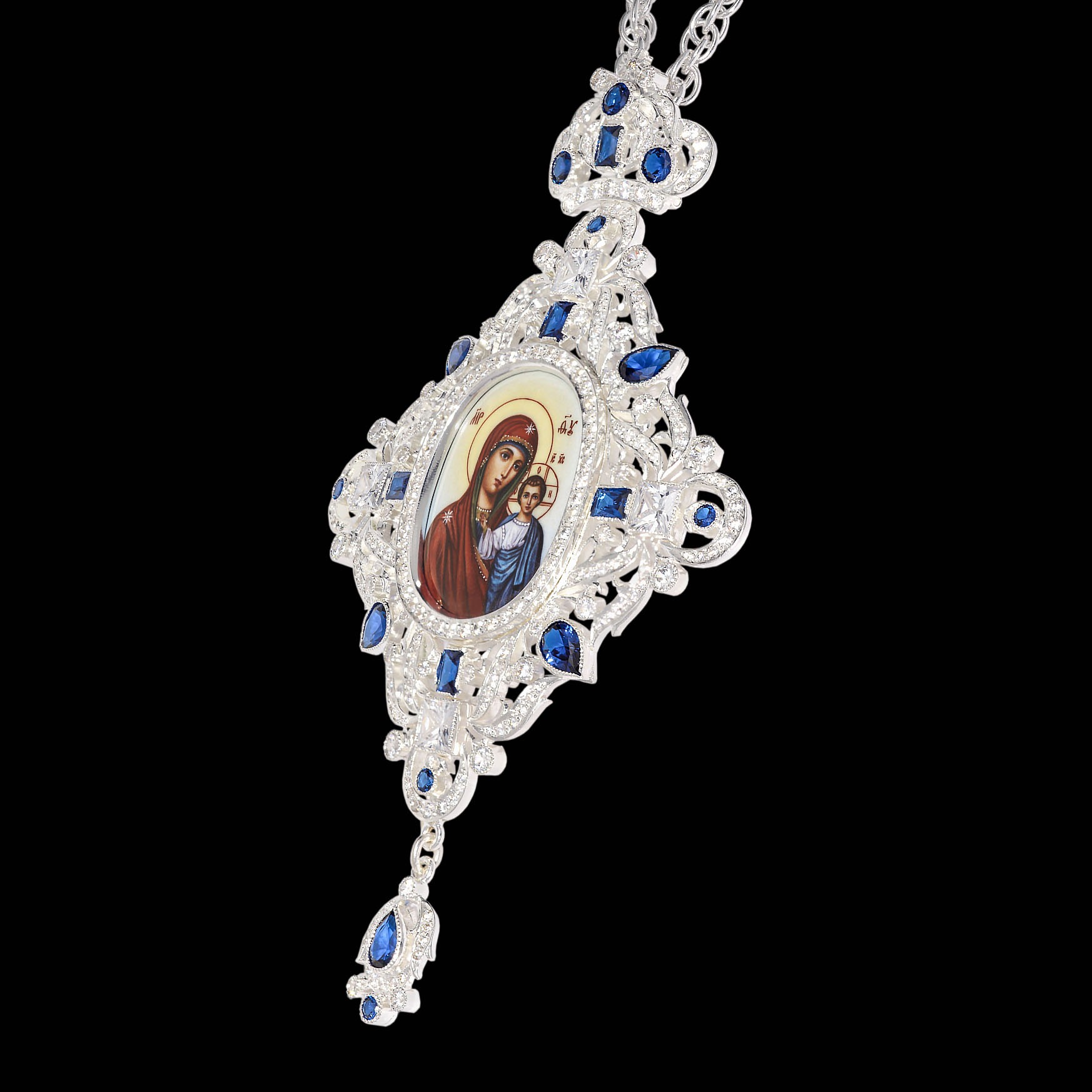 Панагия №213 / Фианиты деколь / серебрение / Казанская БМ