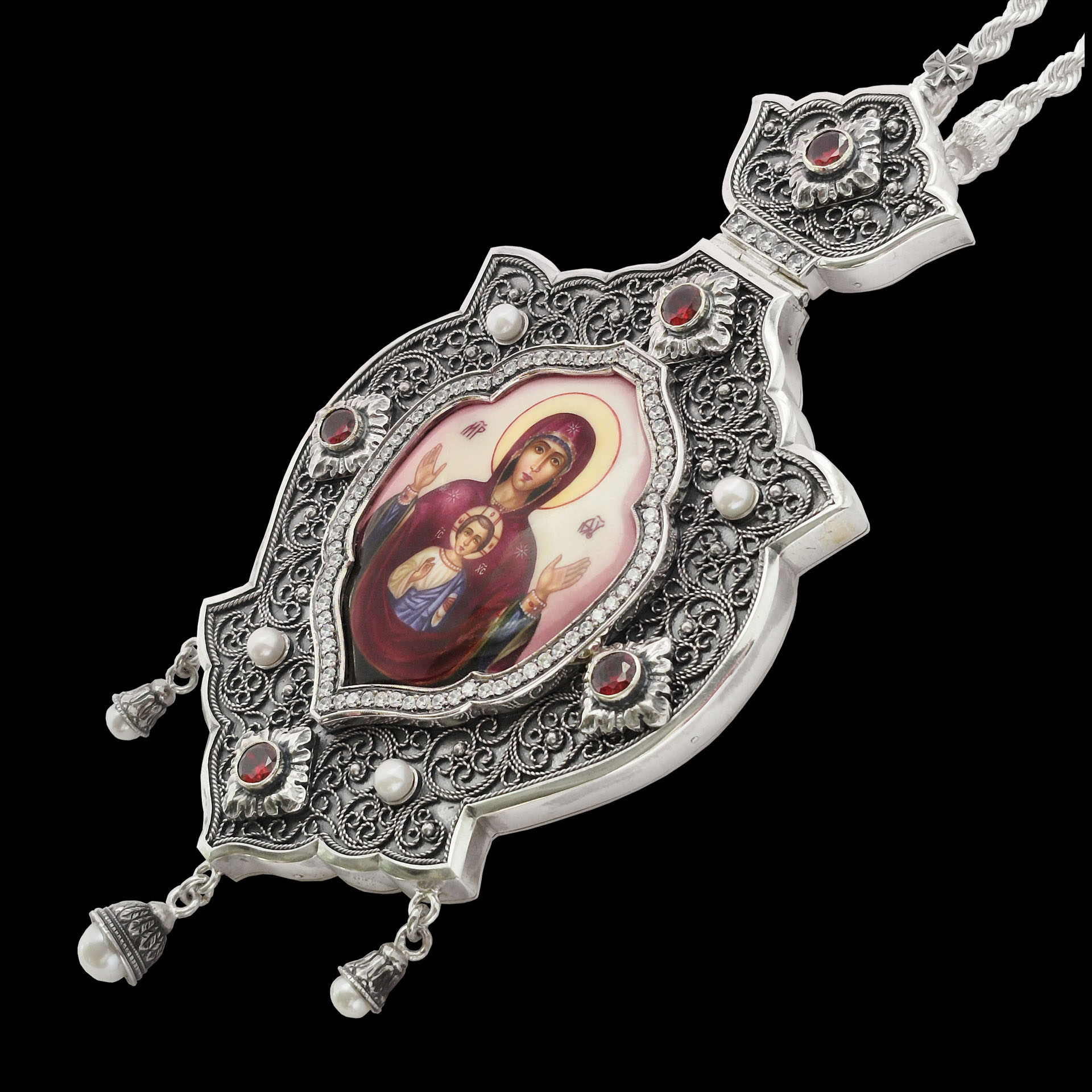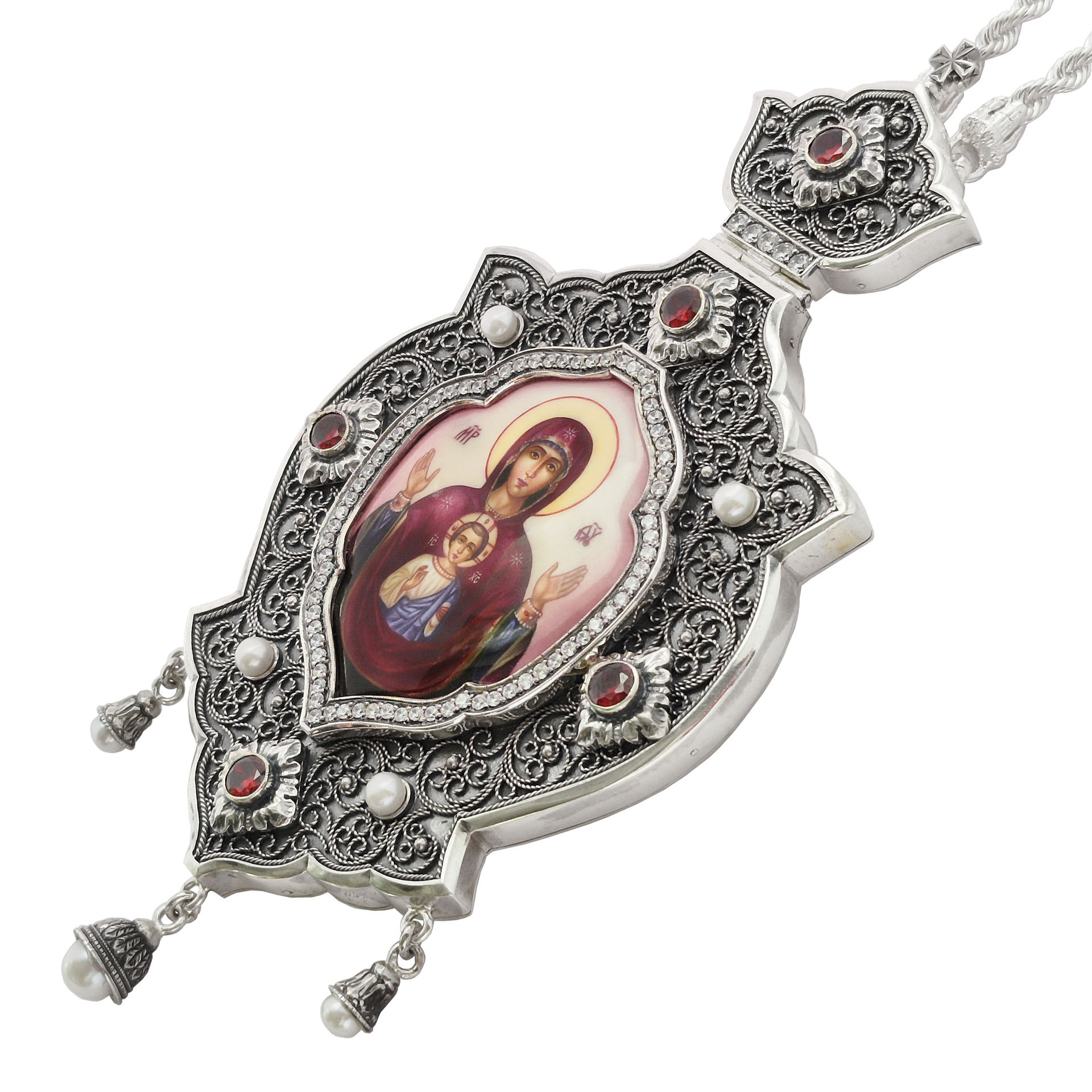 Панагия №227 / Фианиты финифть, филигрань серебро