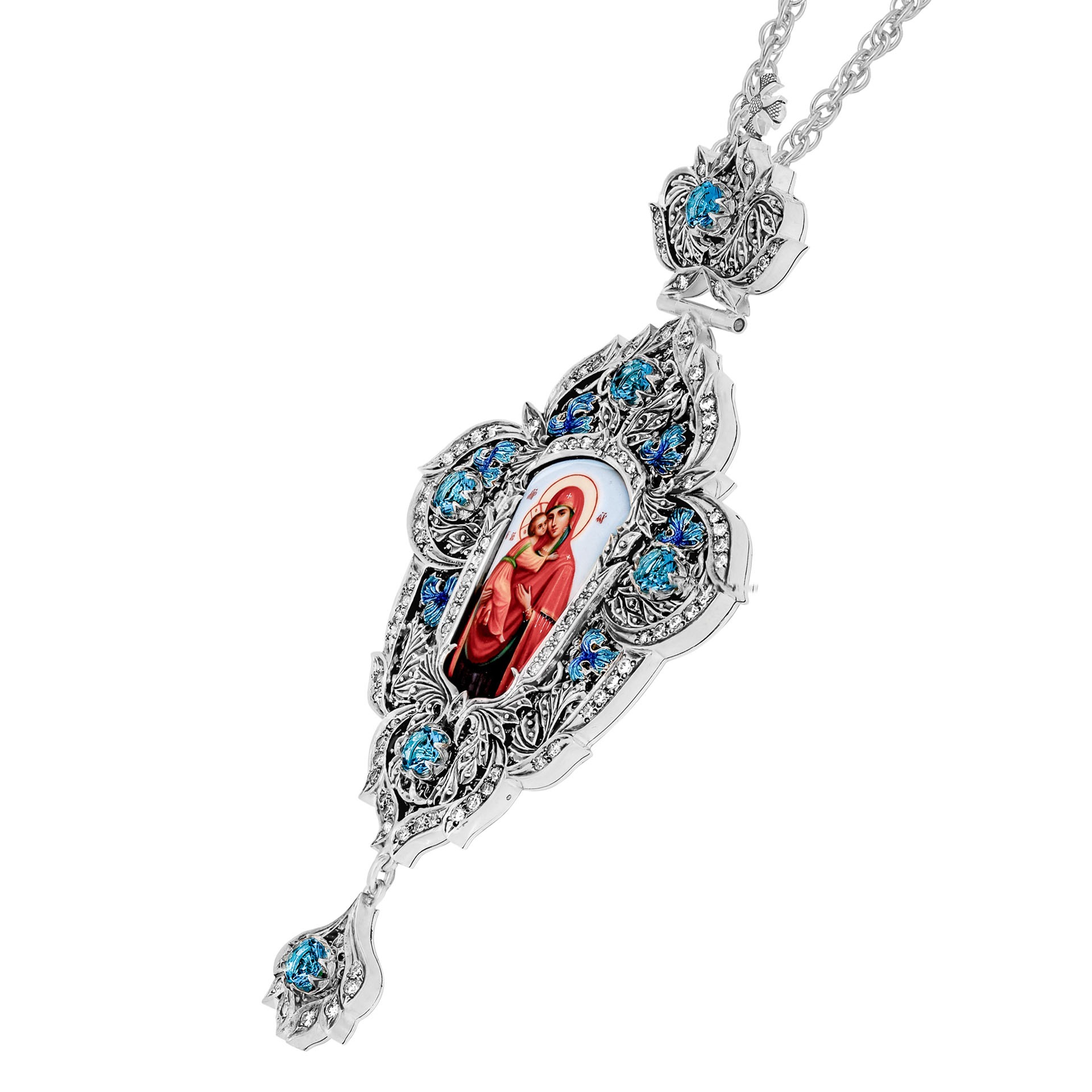 Панагия №7 / Фианиты, деколь, эмаль / серебрение / Владимирская БМ
