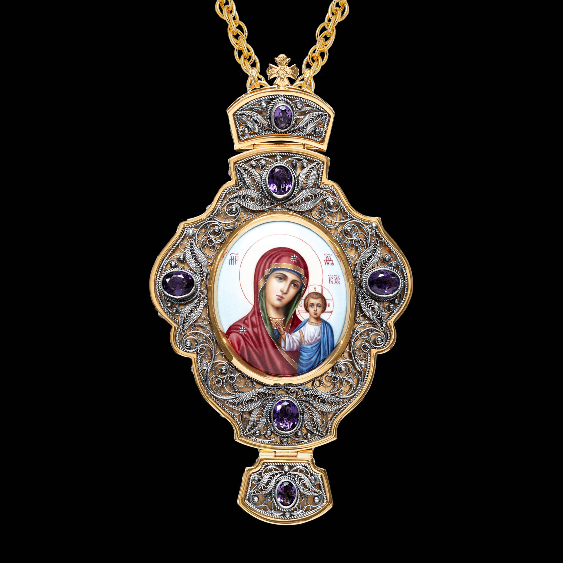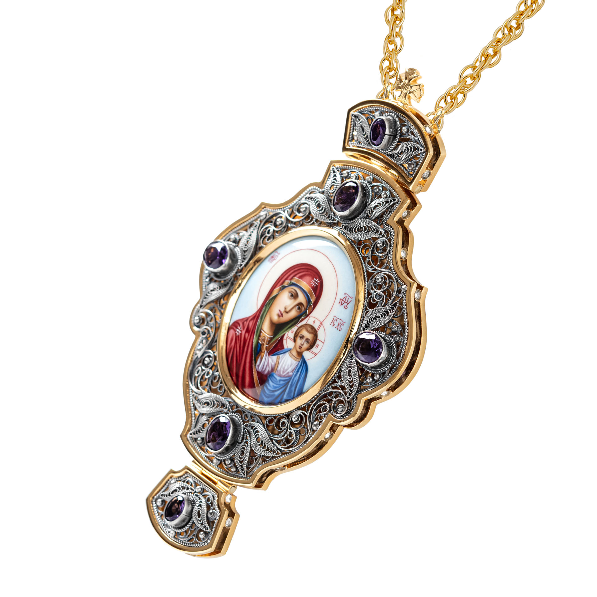 Панагия филигрань №0010 двойной рант финифть / золочение, серебрение / Казанская БМ