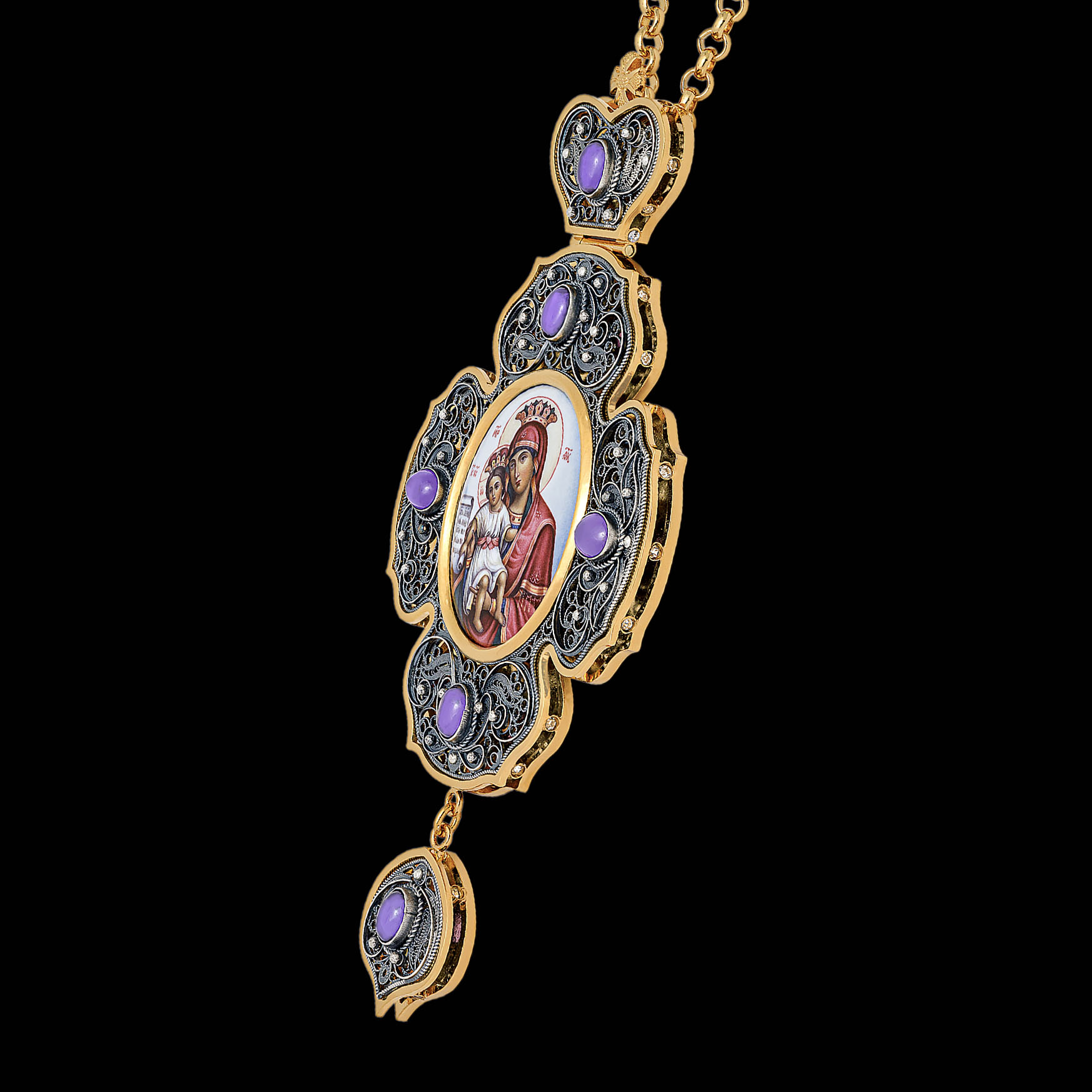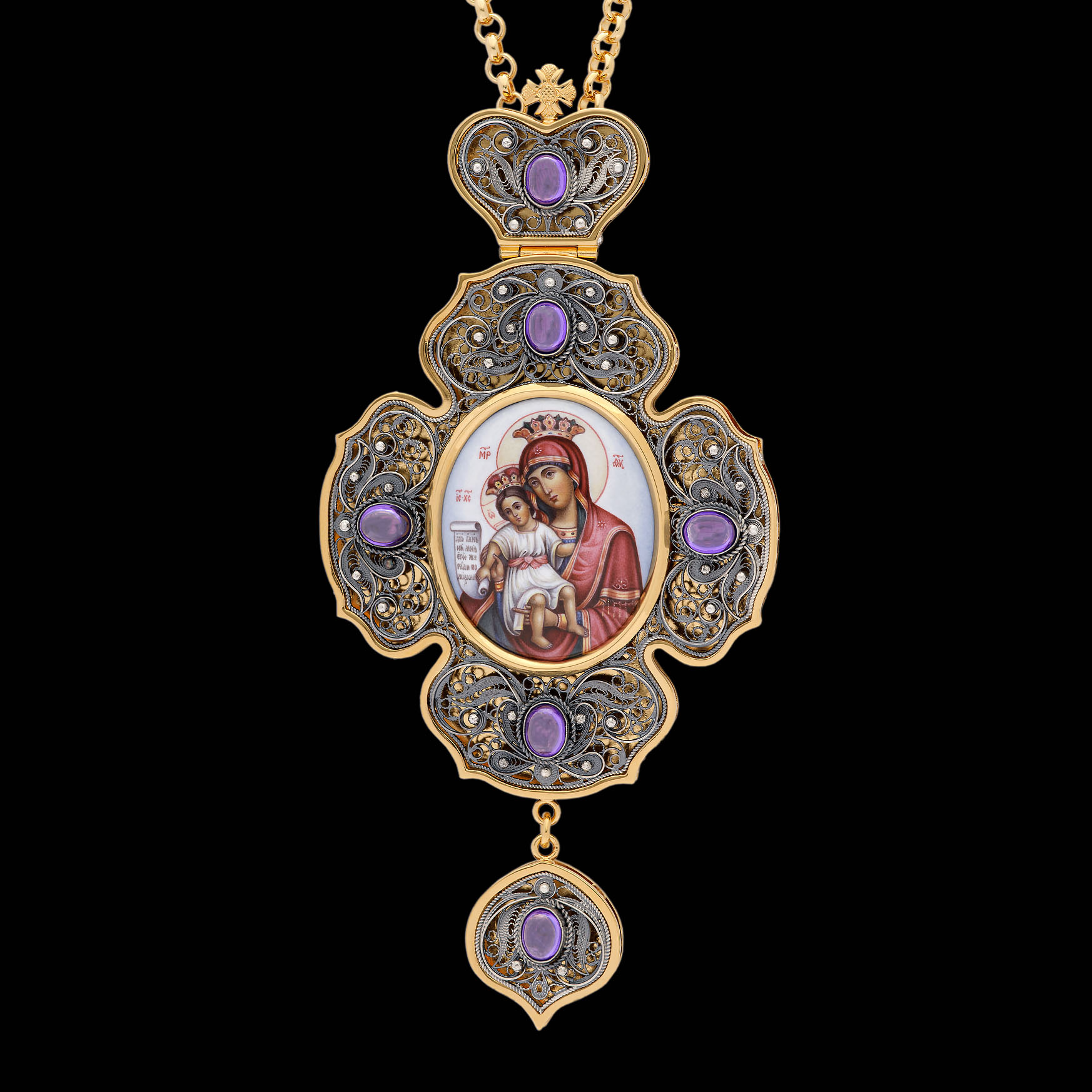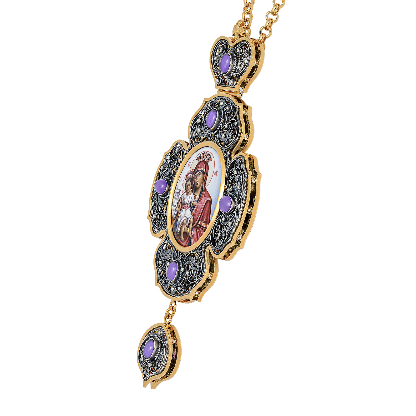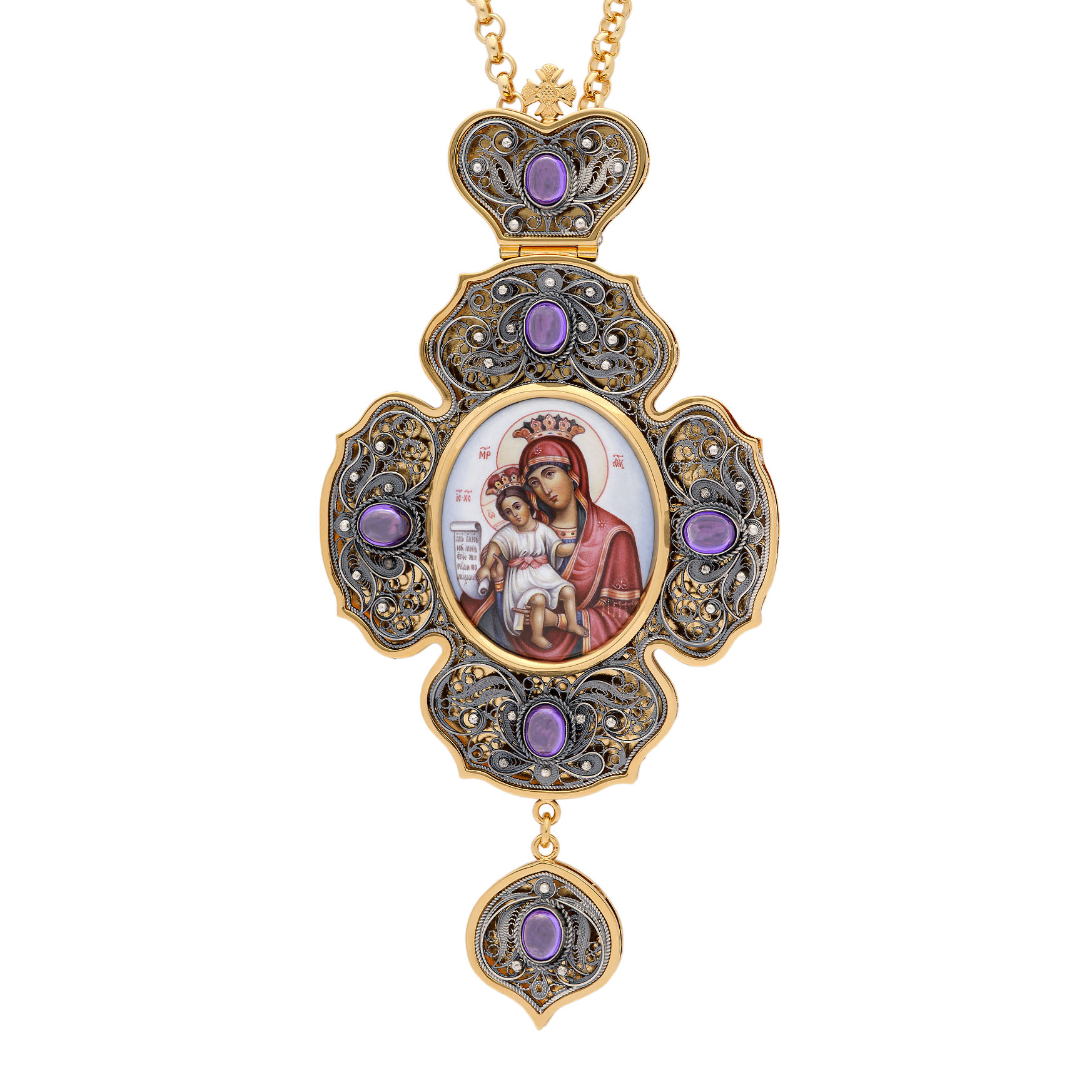 Панагия филигрань №0017 / Фианиты двойной рант финифть / золочение, серебрение