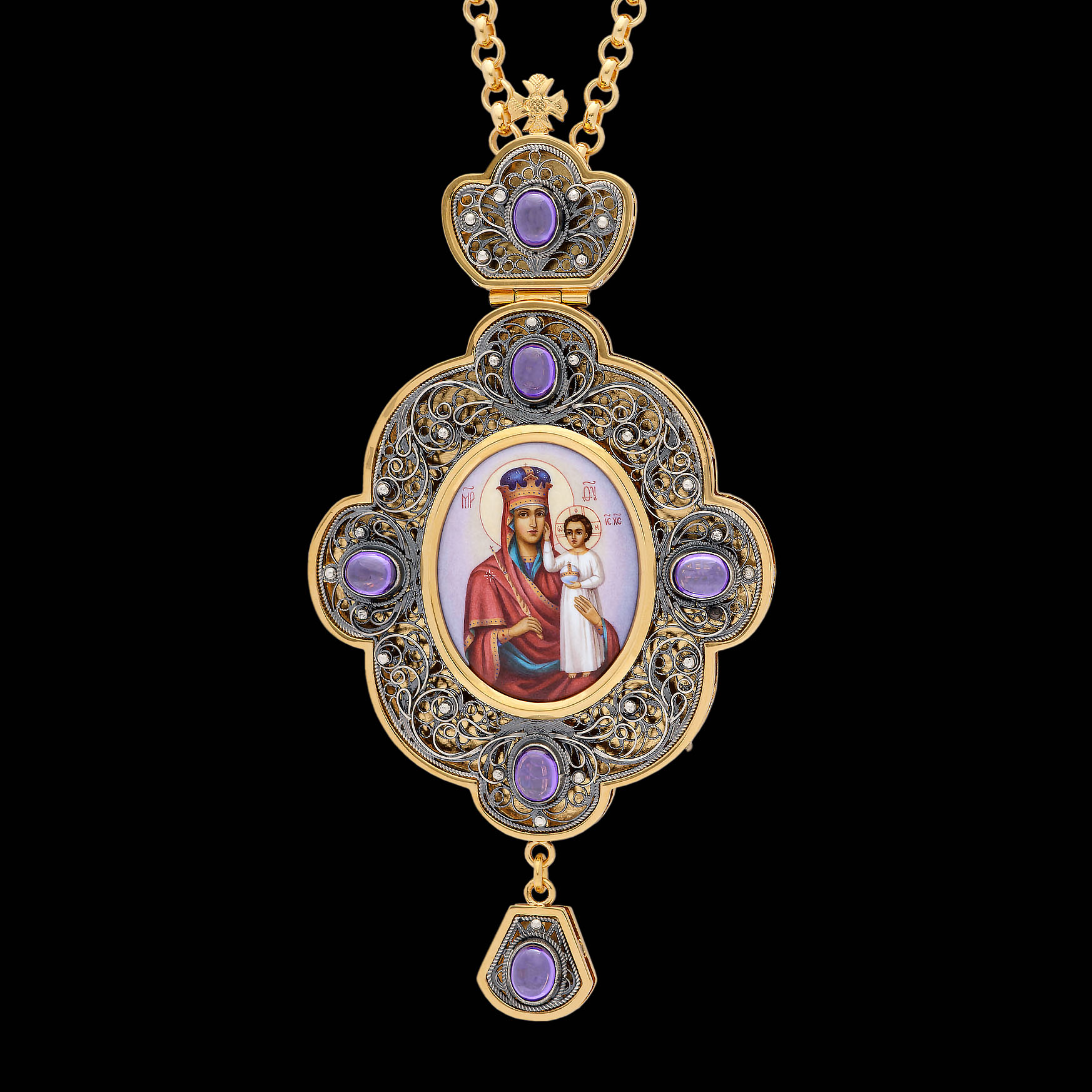 Панагия филигрань №0018 / Фианиты двойной рант финифть / золочение, серебрение / Призри на смирение
