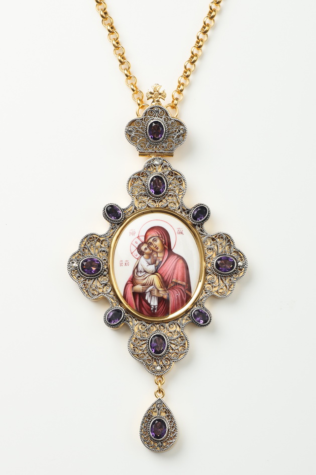 Панагия филигрань №0021 коробка финифть / золочение, серебрение