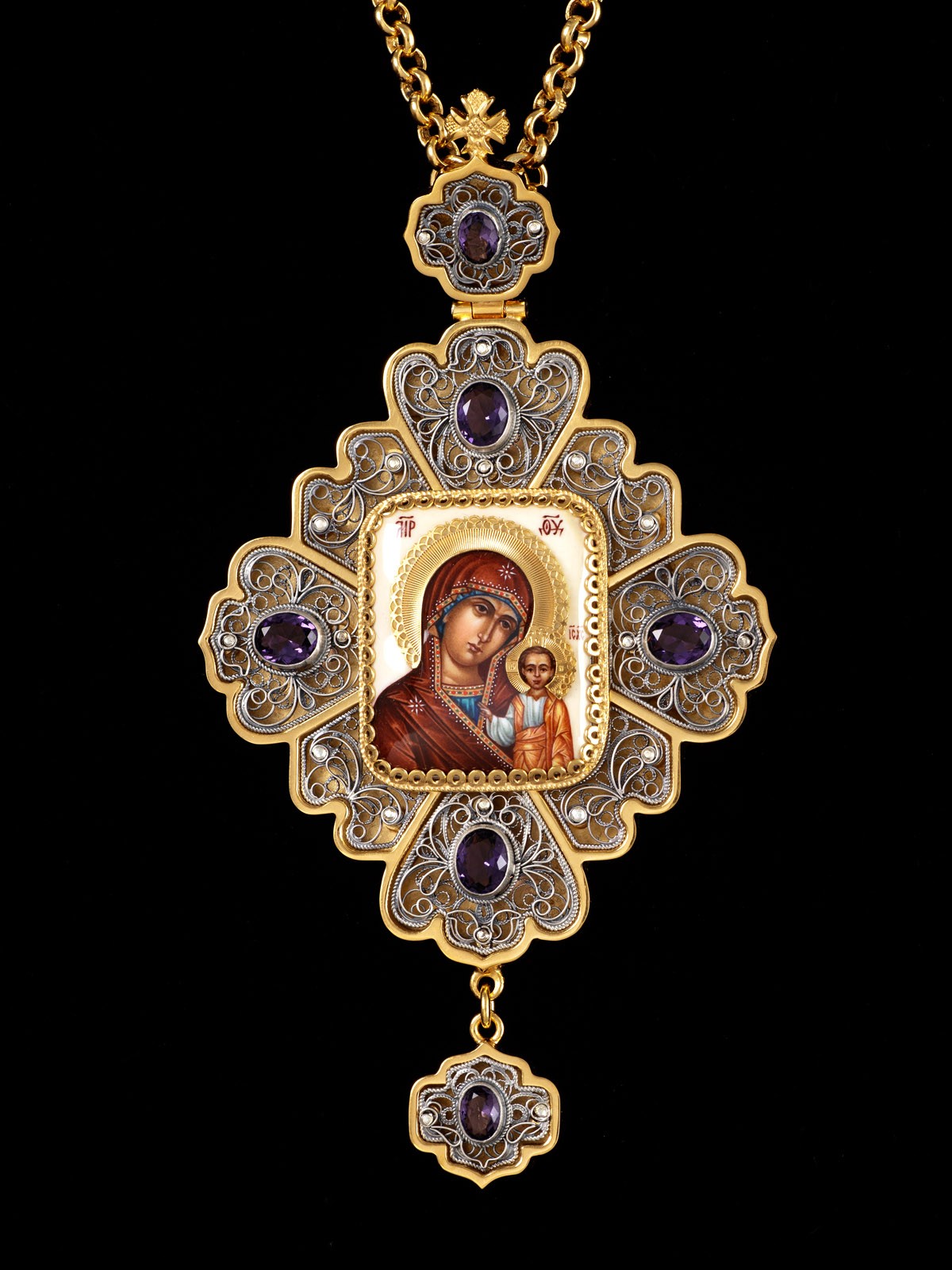 Панагия серебро филигрань №10 финифть / золочение / Казанская БМ (УИН)