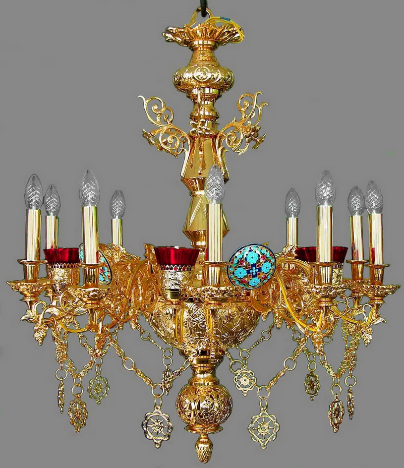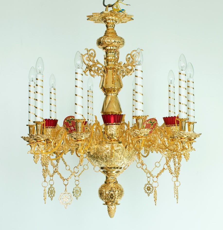 Стоимость паникадила с позолоченными свечами рассчитывается при заказе.