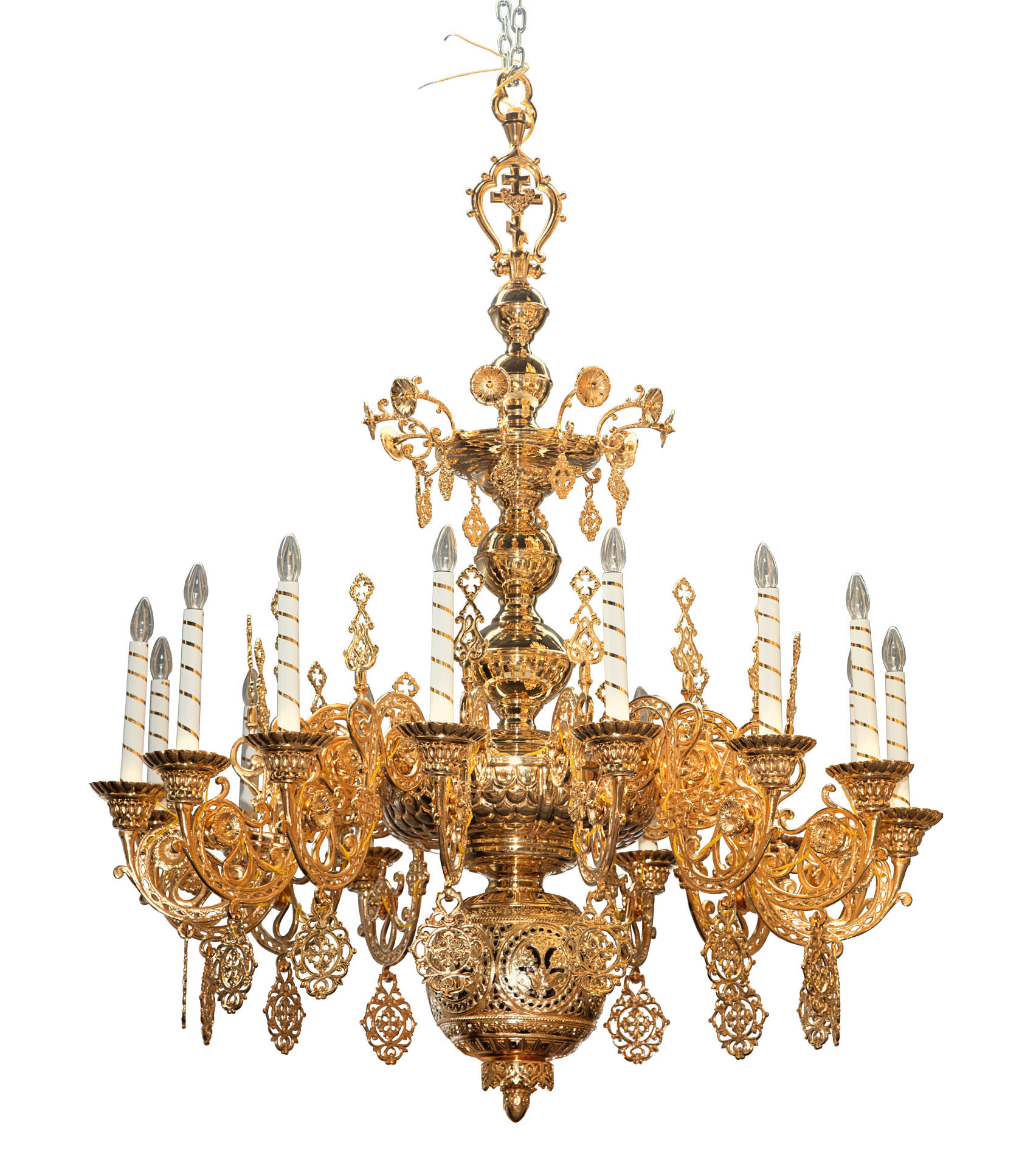 Стоимость паникадила с позолоченными свечами рассчитывается при заказе.