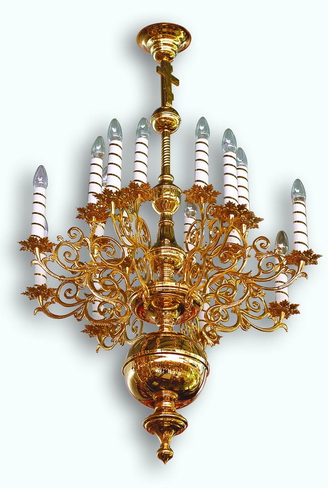 Стоимость паникадила с позолоченными свечами рассчитывается при заказе.