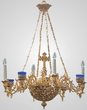 Стоимость паникадила с позолоченными свечами рассчитывается при заказе.