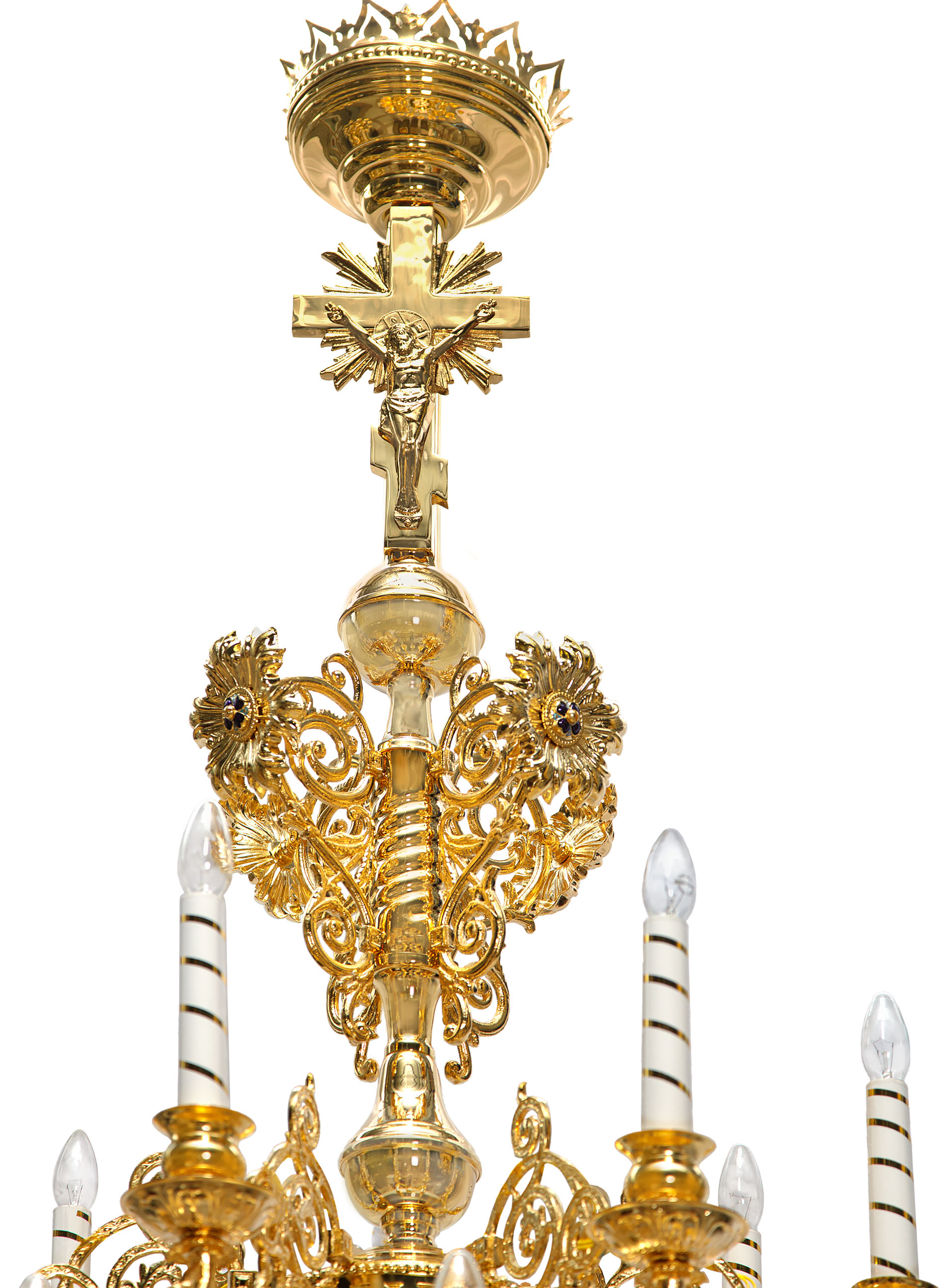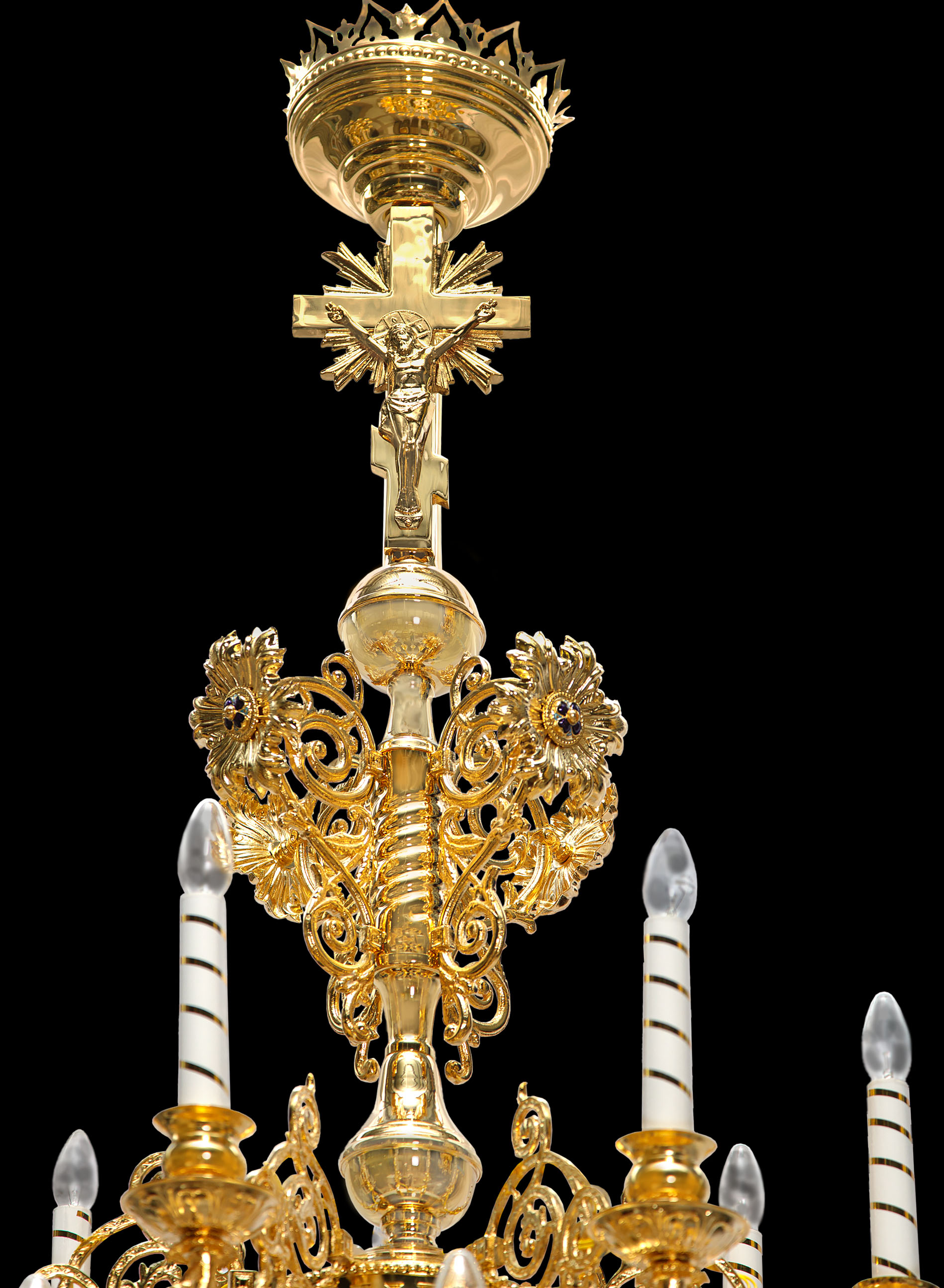 Стоимость паникадила с позолоченными свечами рассчитывается при заказе.