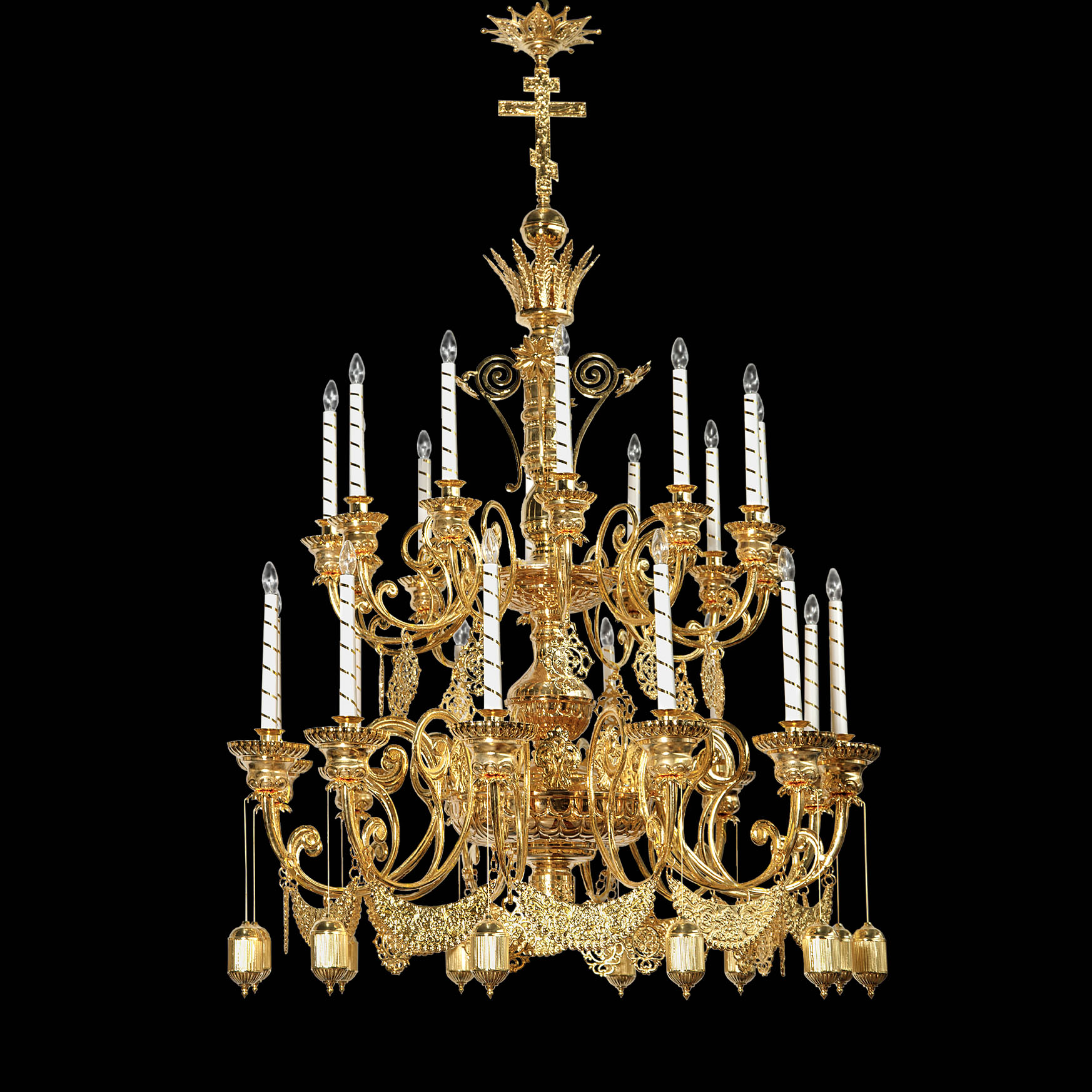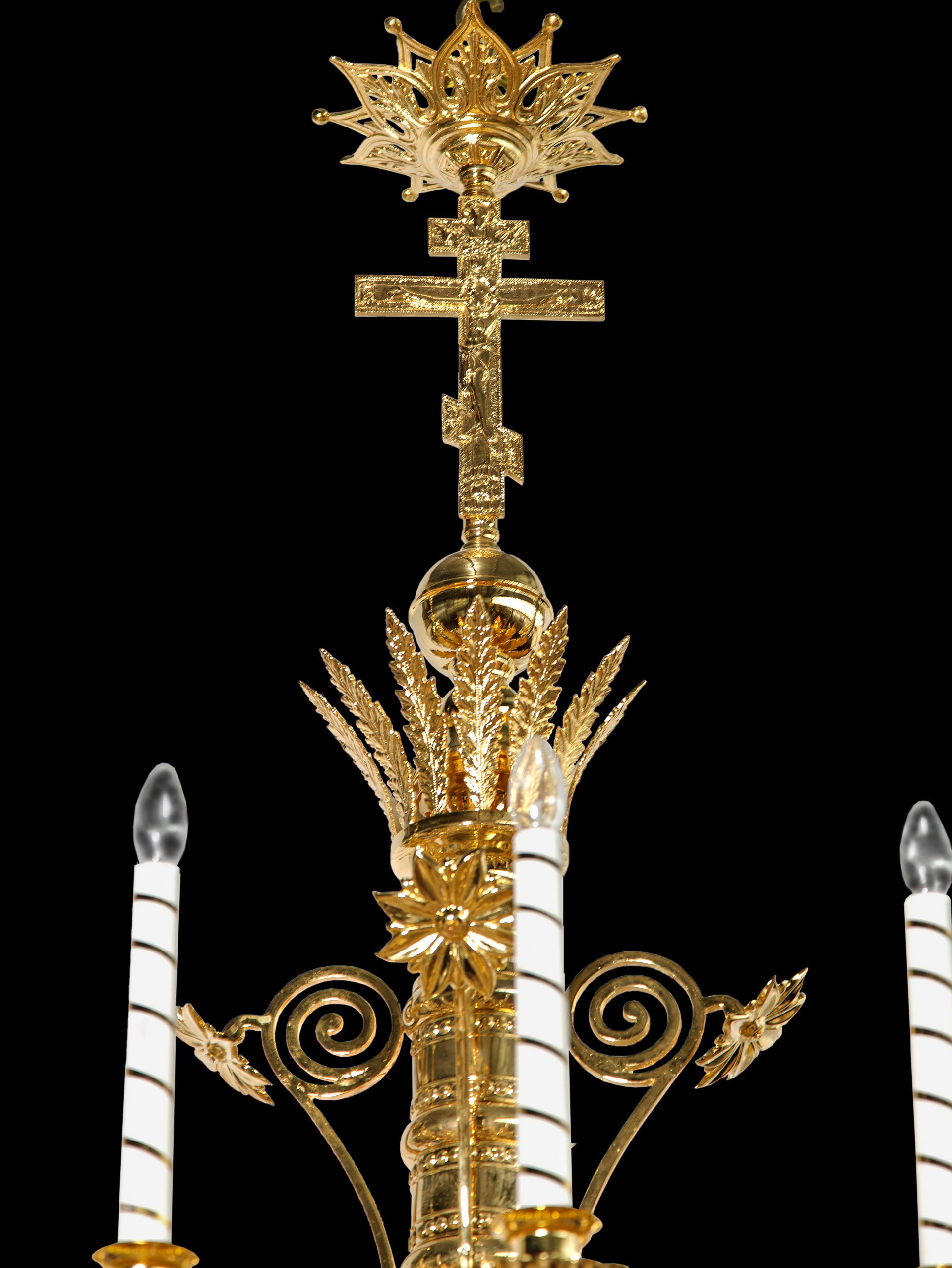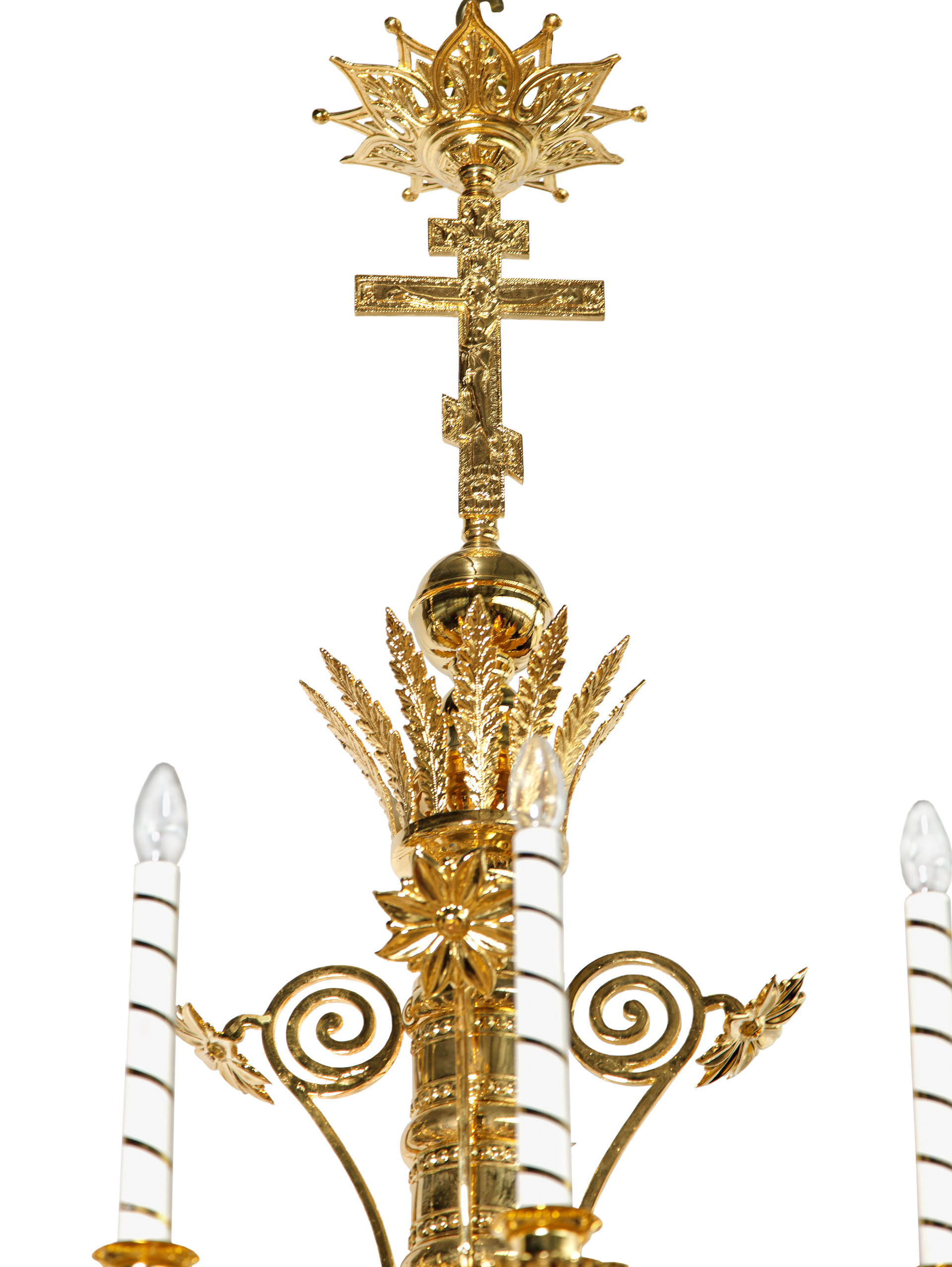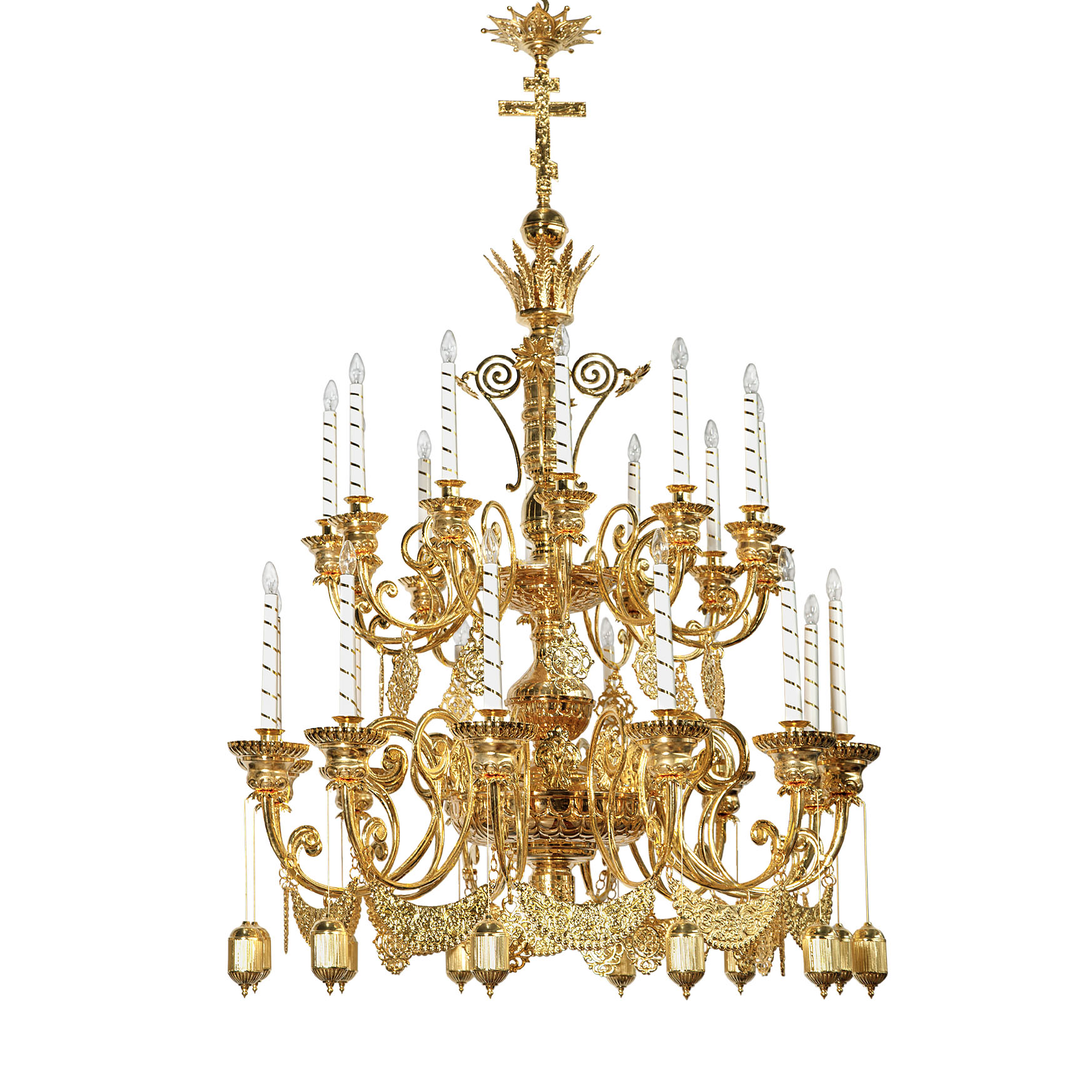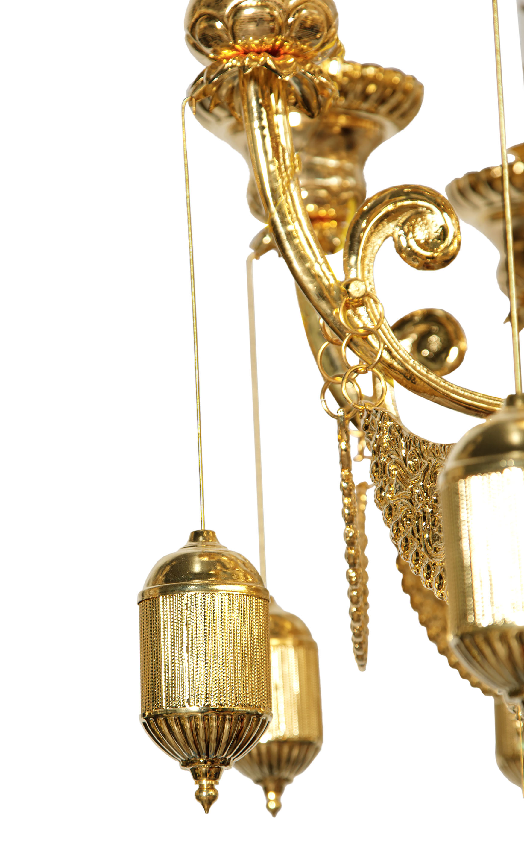 Стоимость паникадила с позолоченными свечами рассчитывается при заказе.