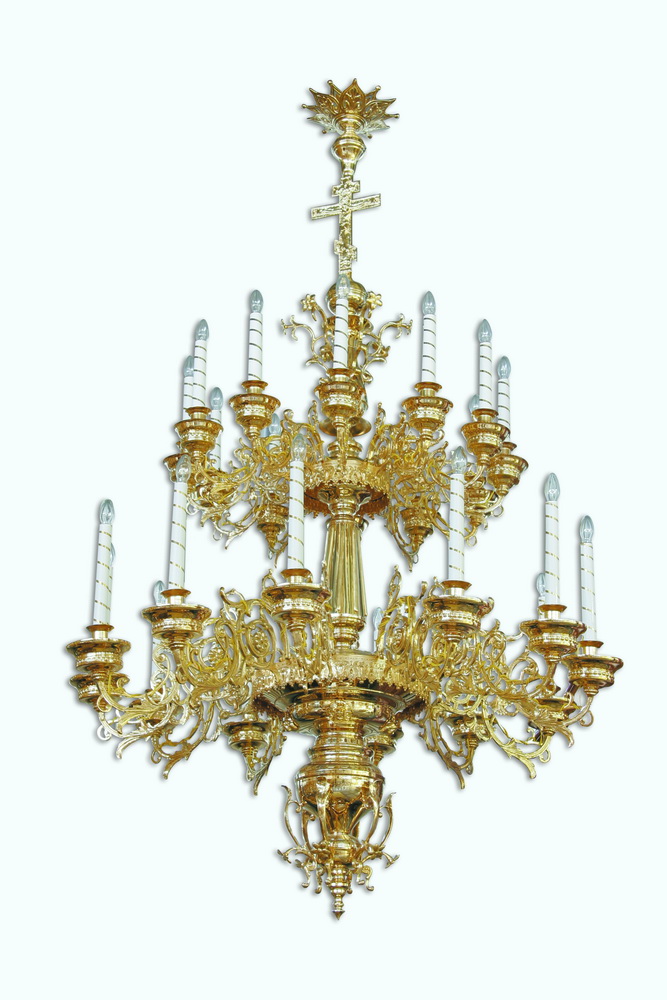 Стоимость паникадила с позолоченными свечами рассчитывается при заказе.