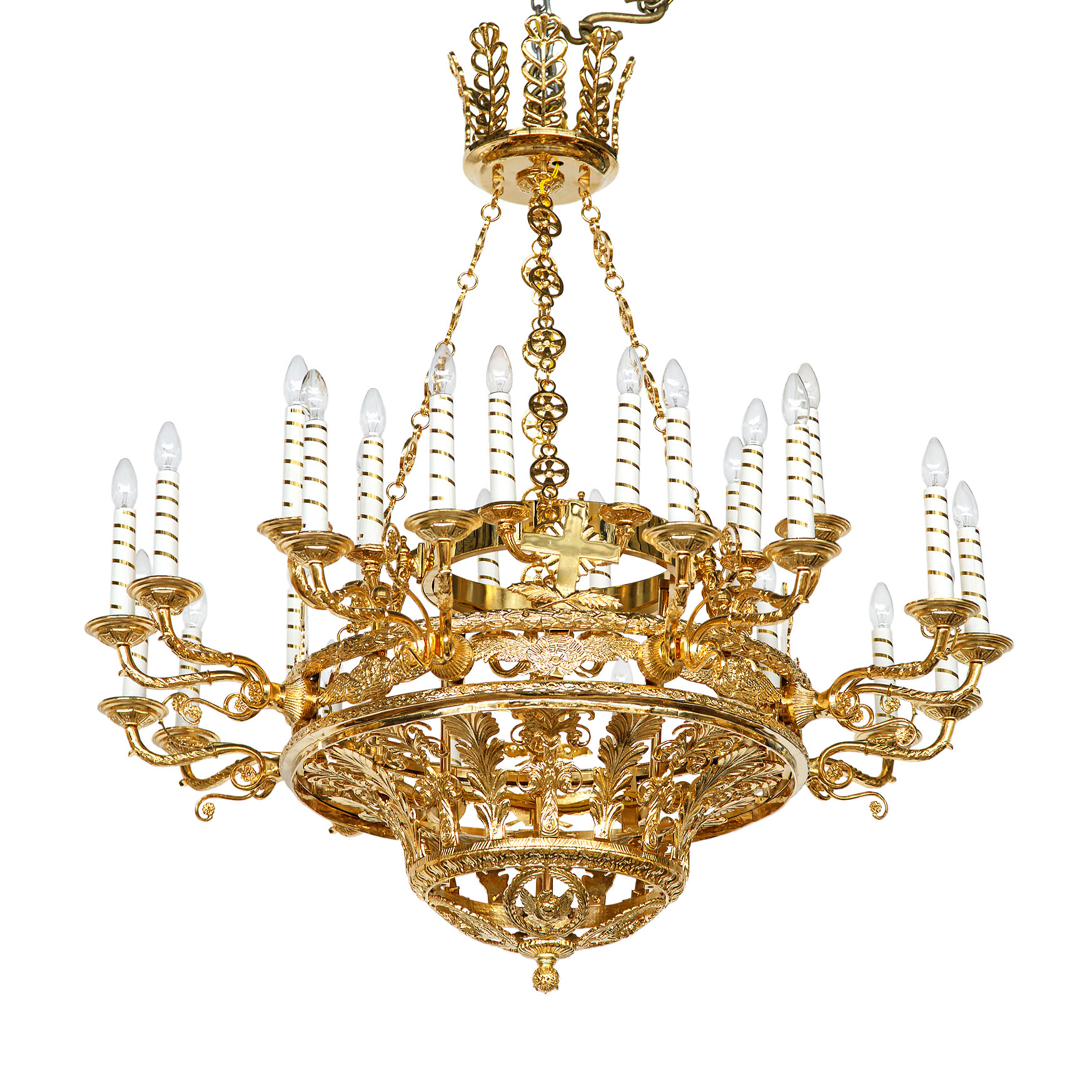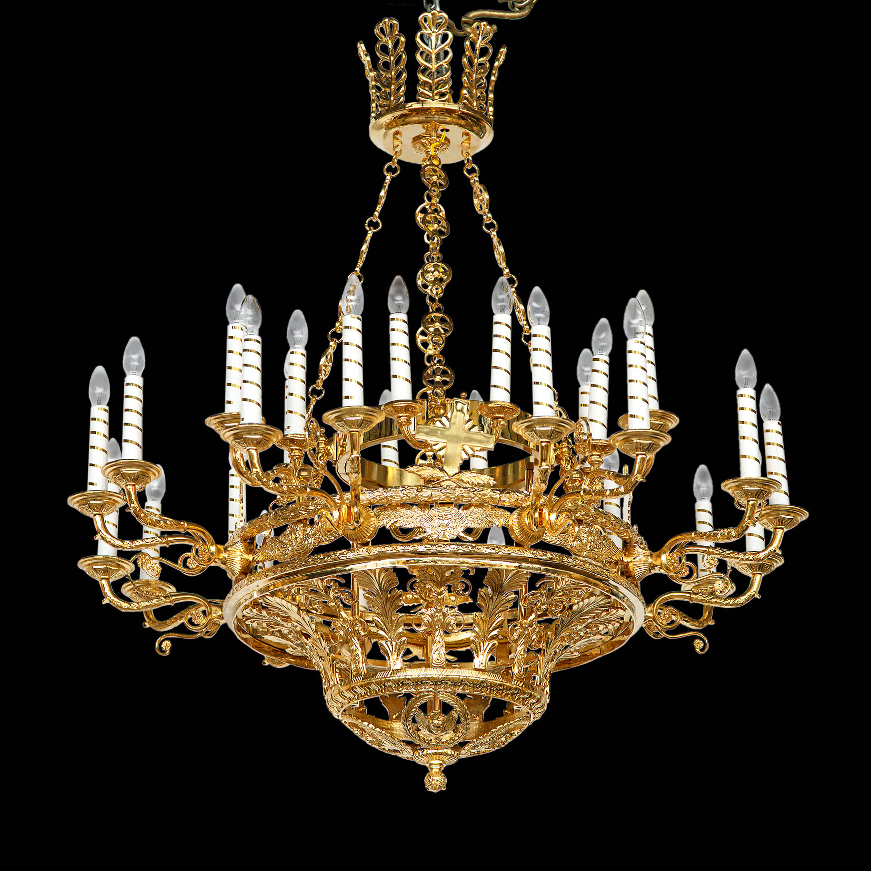 Стоимость паникадила с позолоченными свечами рассчитывается при заказе.