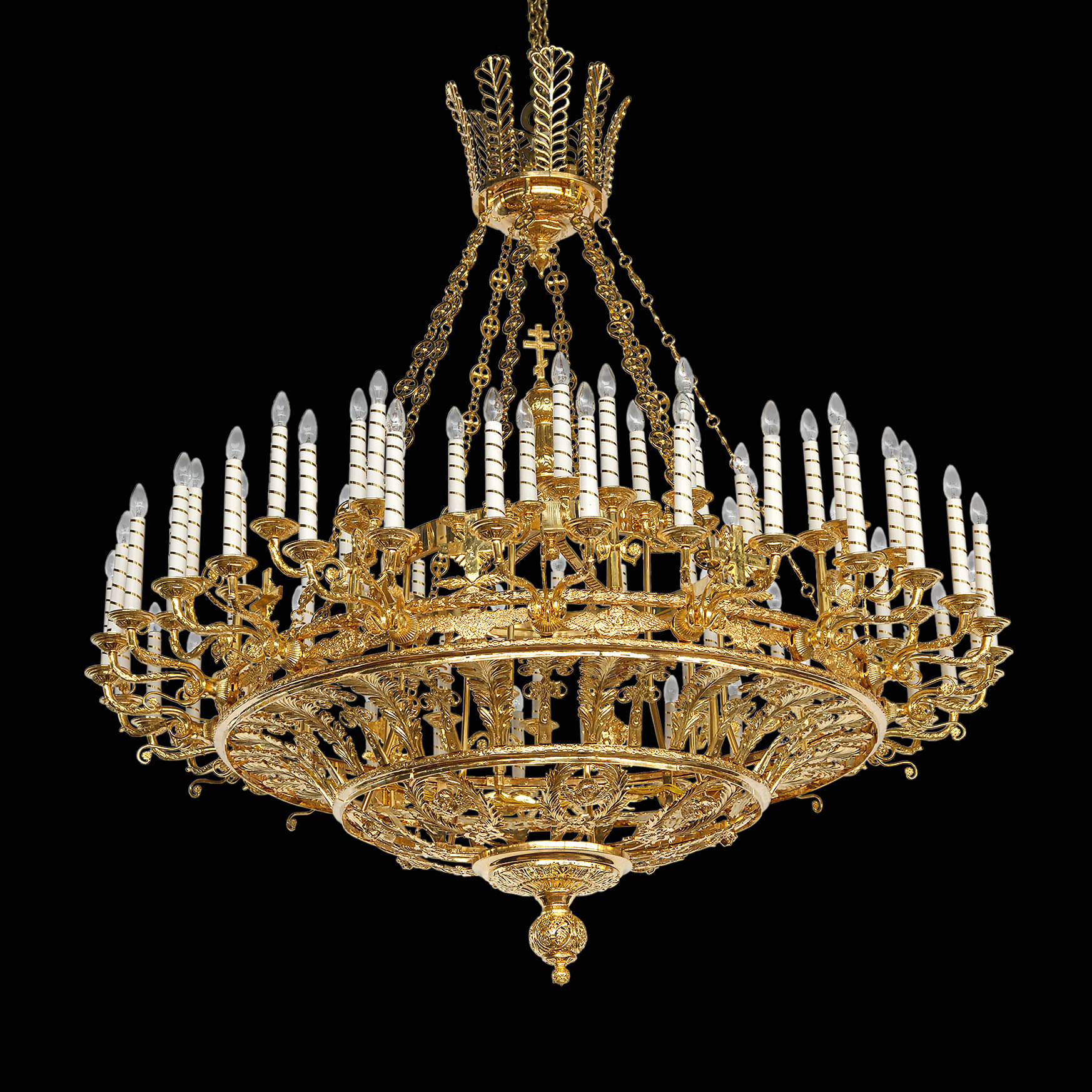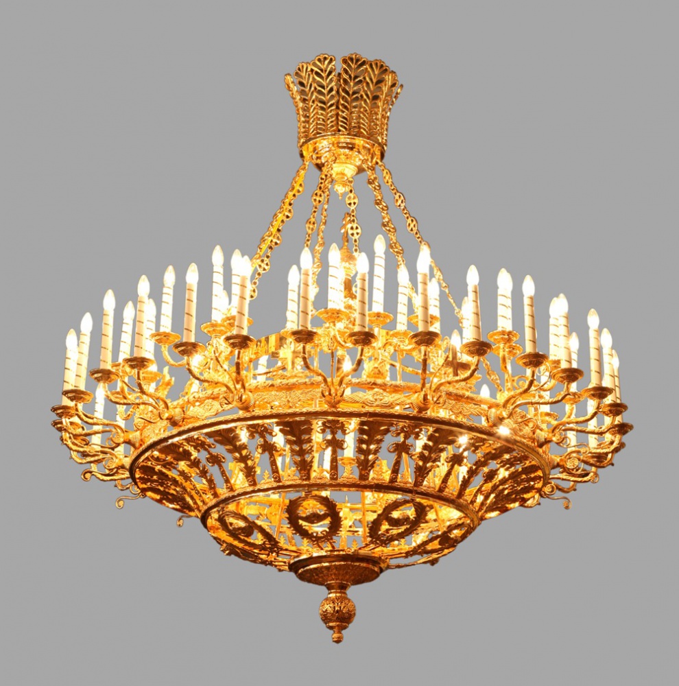 Стоимость паникадила с позолоченными свечами рассчитывается при заказе.