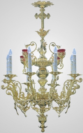 Стоимость паникадила с позолоченными свечами рассчитывается при заказе.