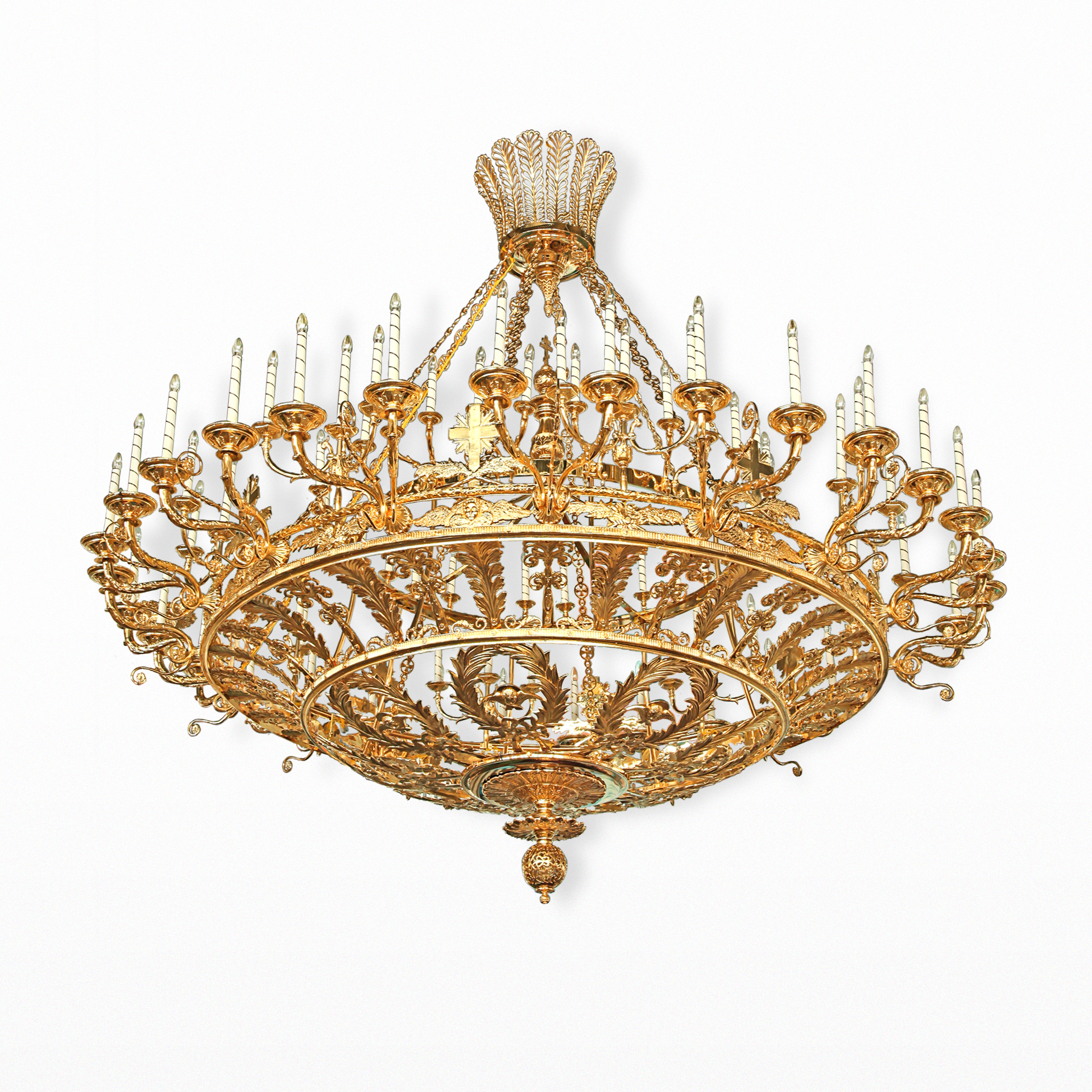 Стоимость паникадила с позолоченными свечами рассчитывается при заказе.