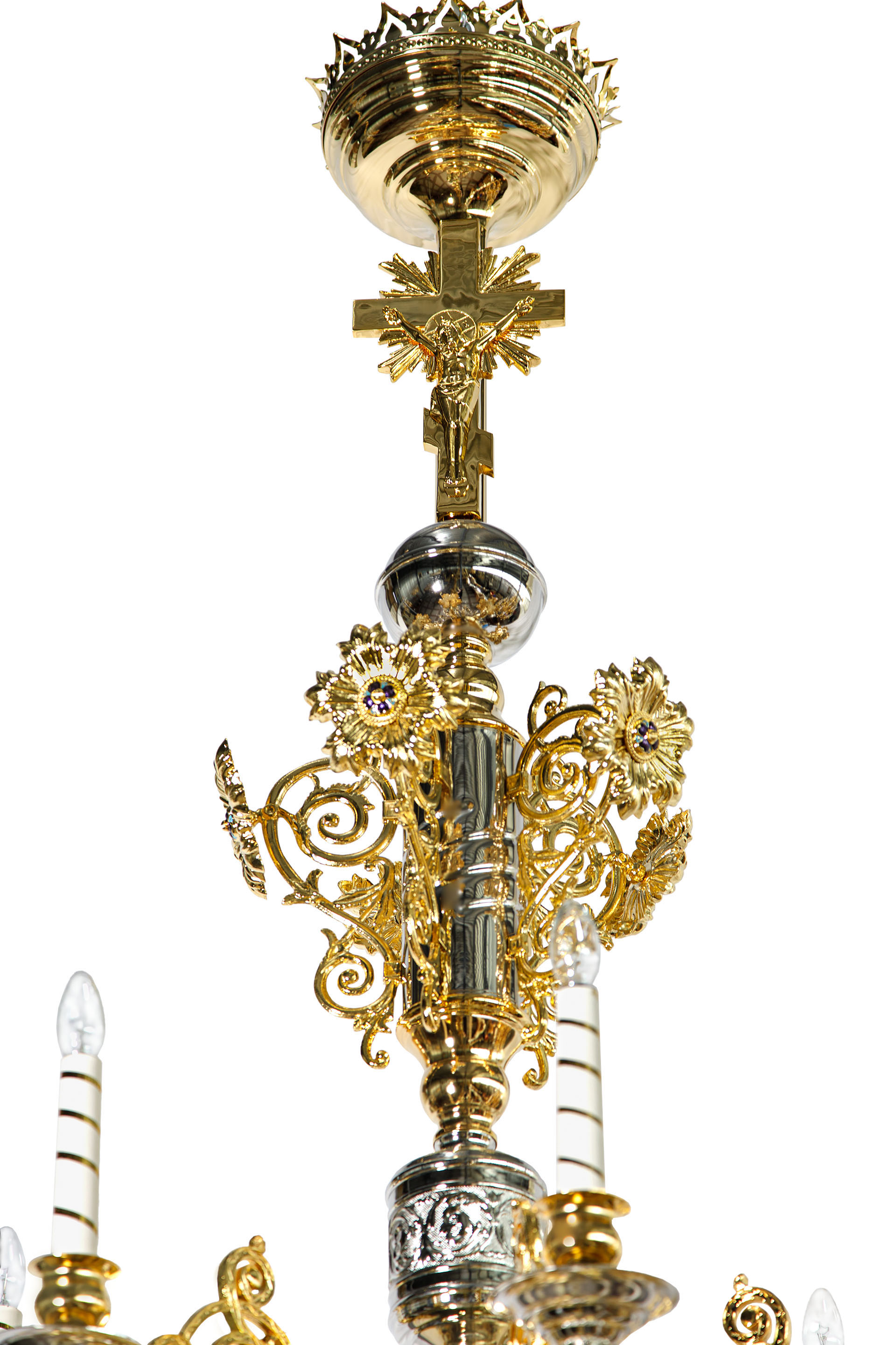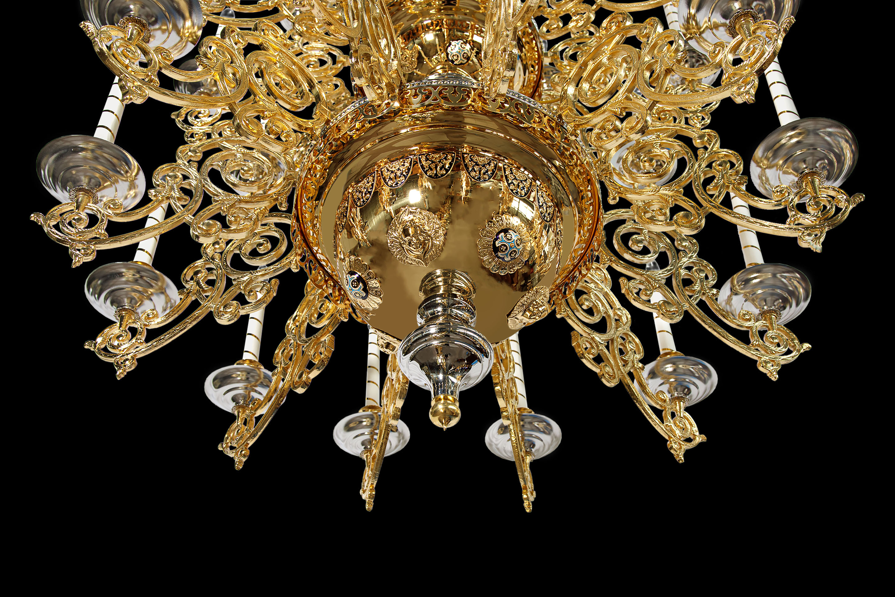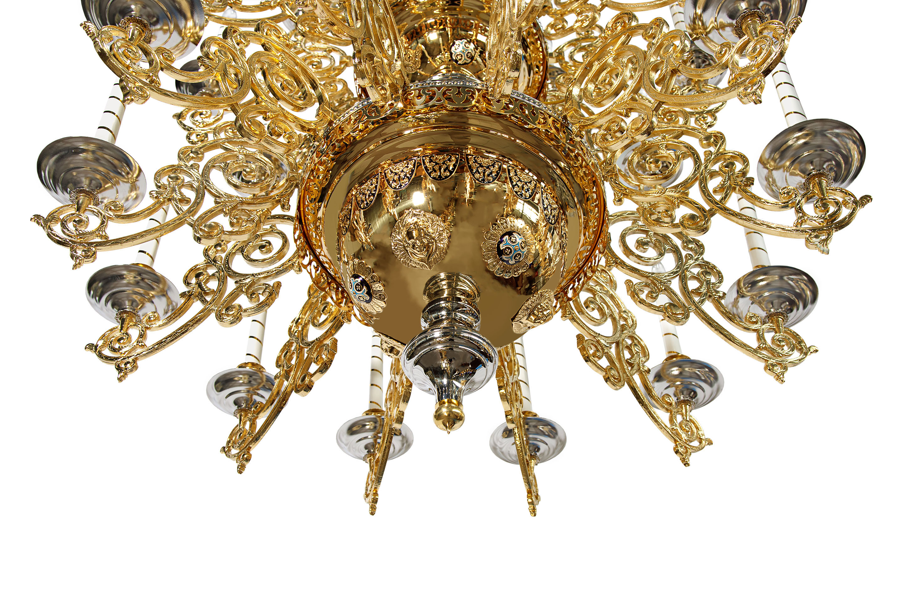 Стоимость паникадила с позолоченными свечами рассчитывается при заказе.