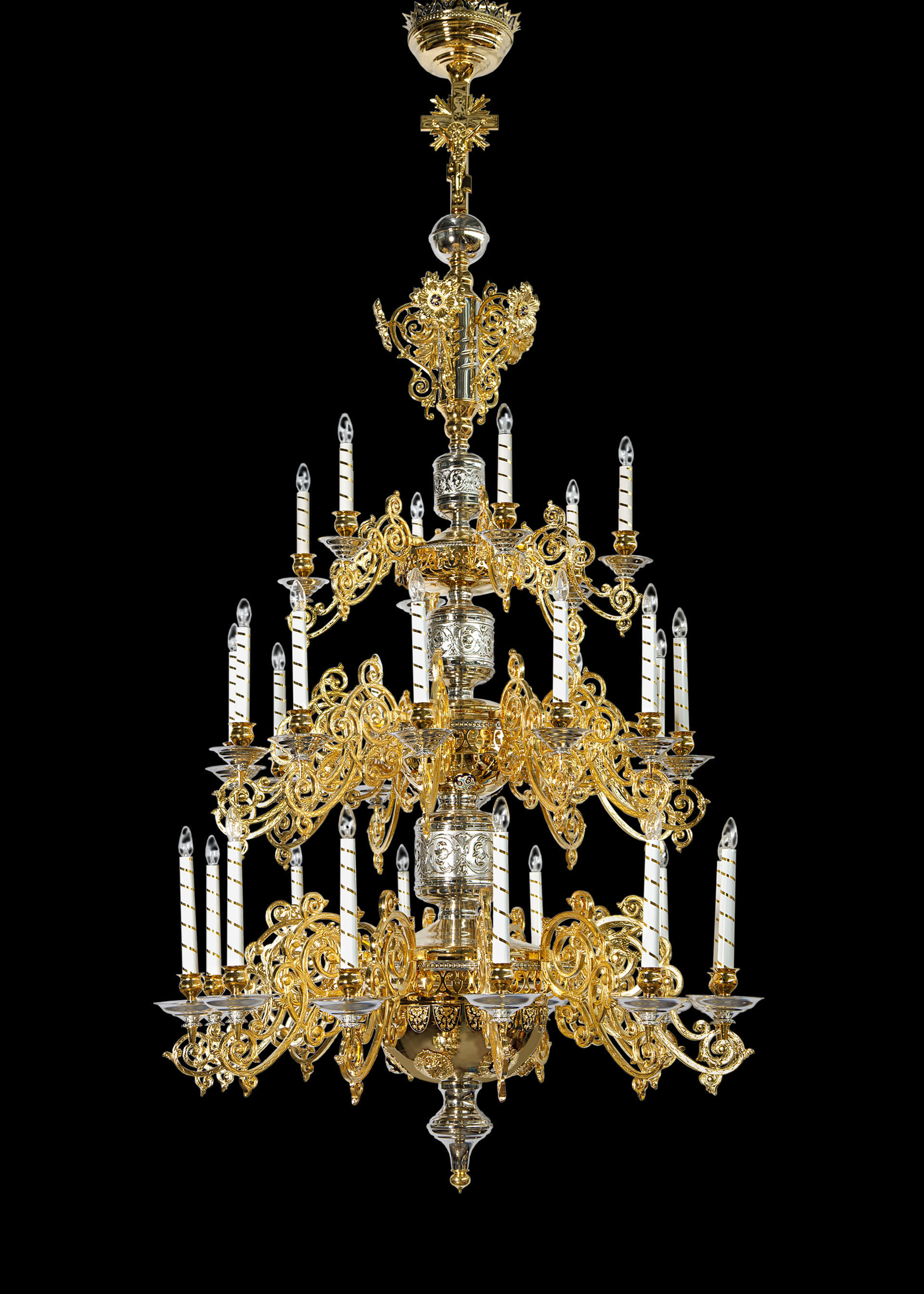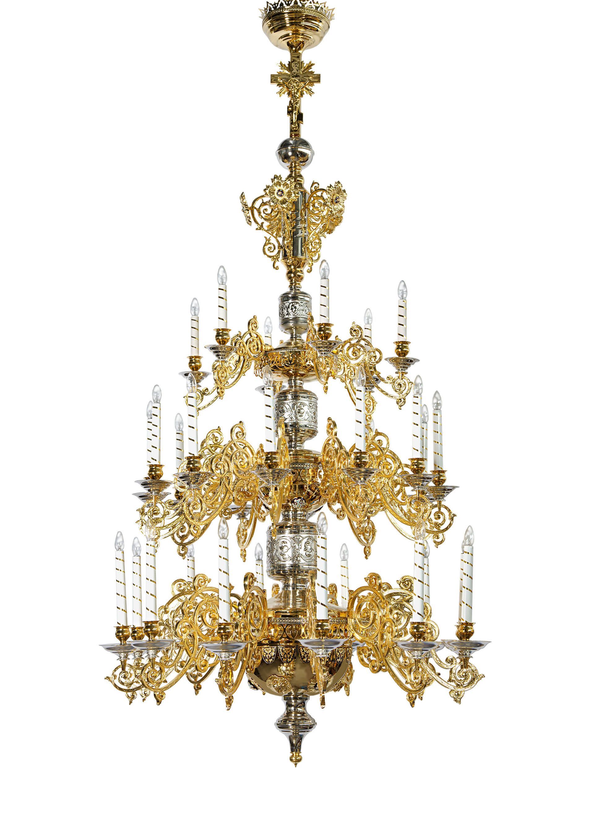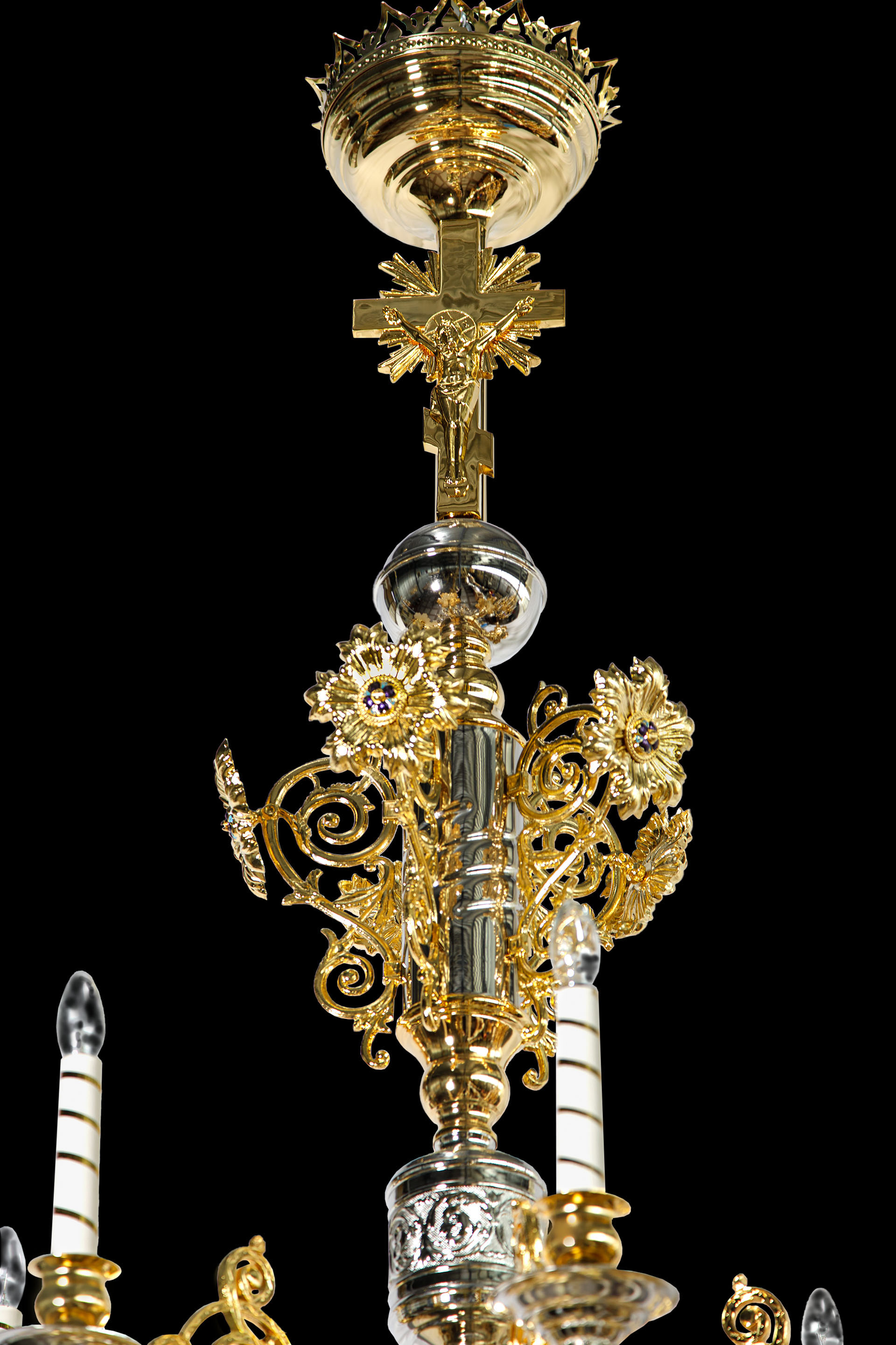 Стоимость паникадила с позолоченными свечами рассчитывается при заказе.