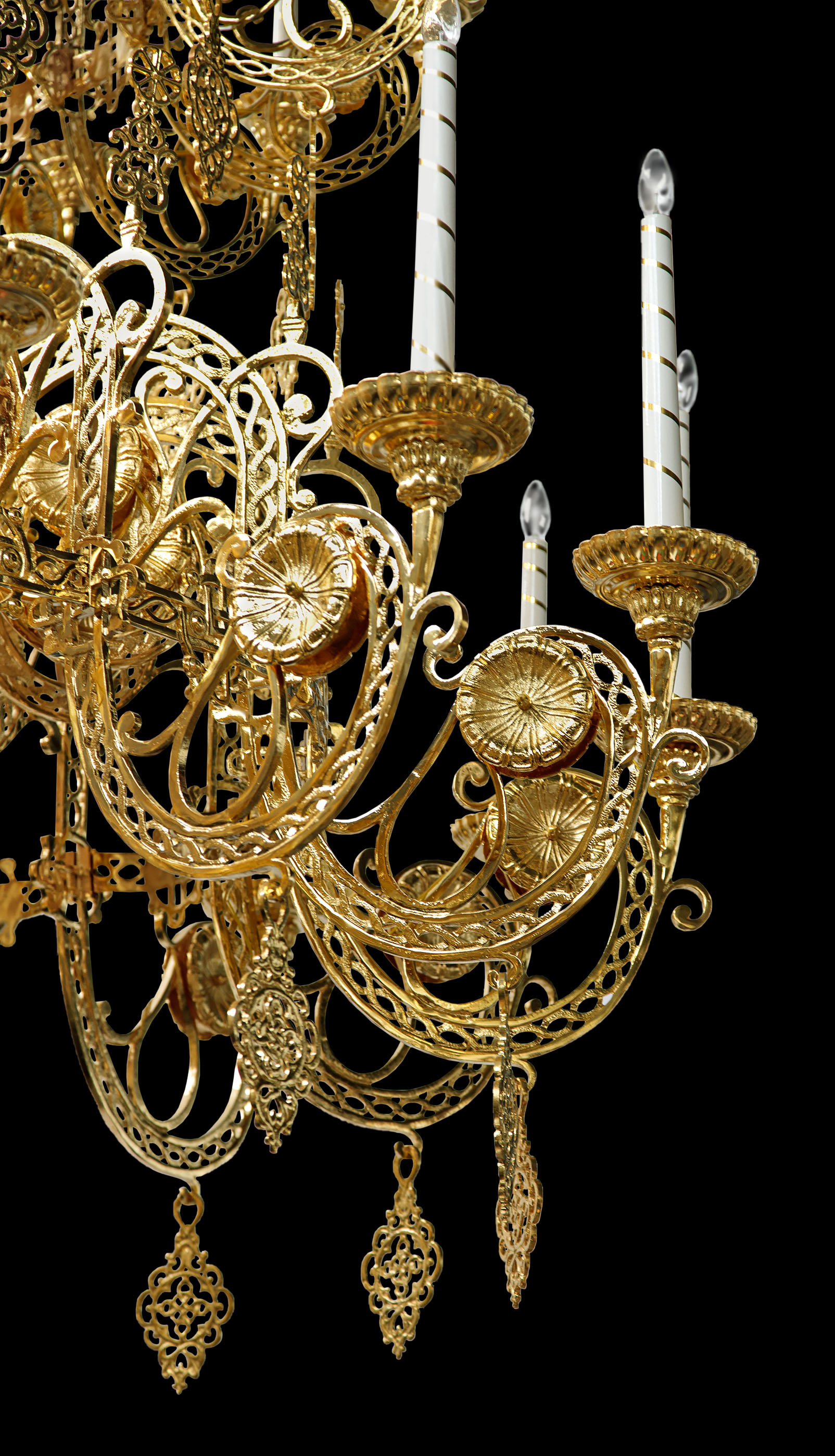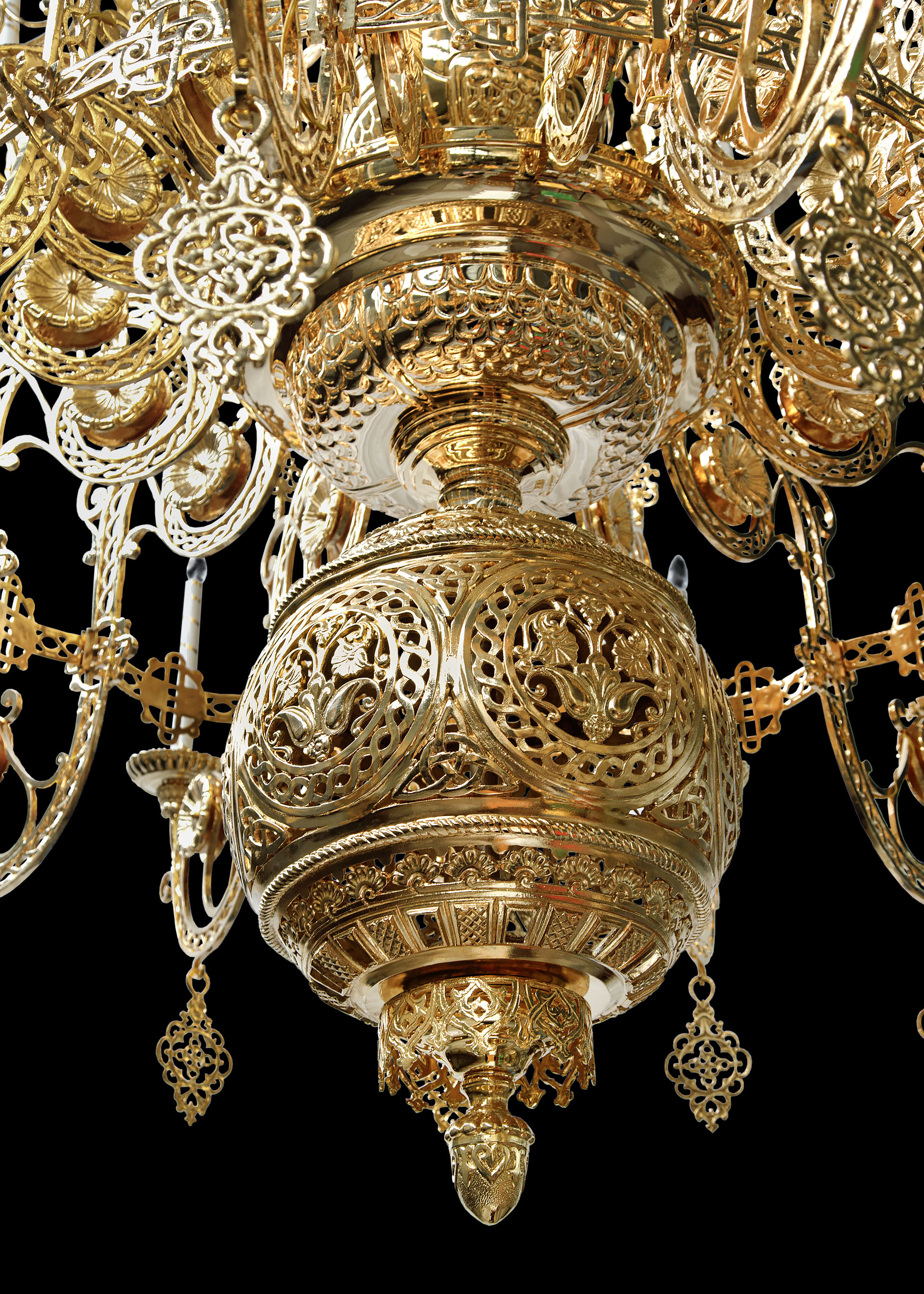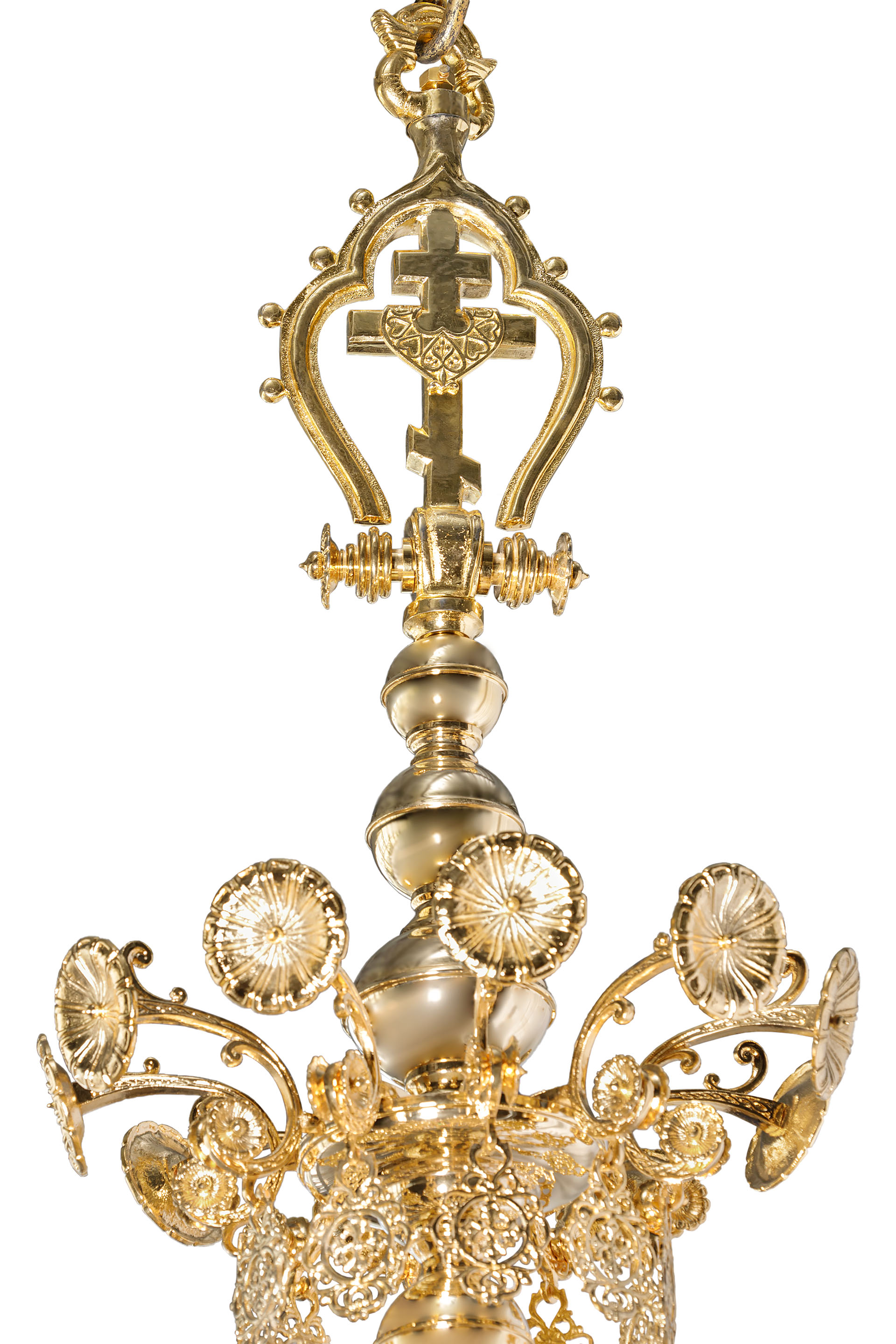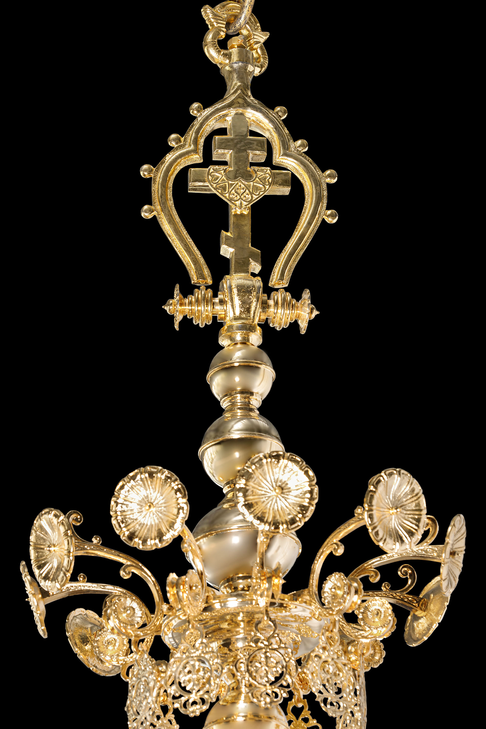 Стоимость паникадила с позолоченными свечами рассчитывается при заказе.