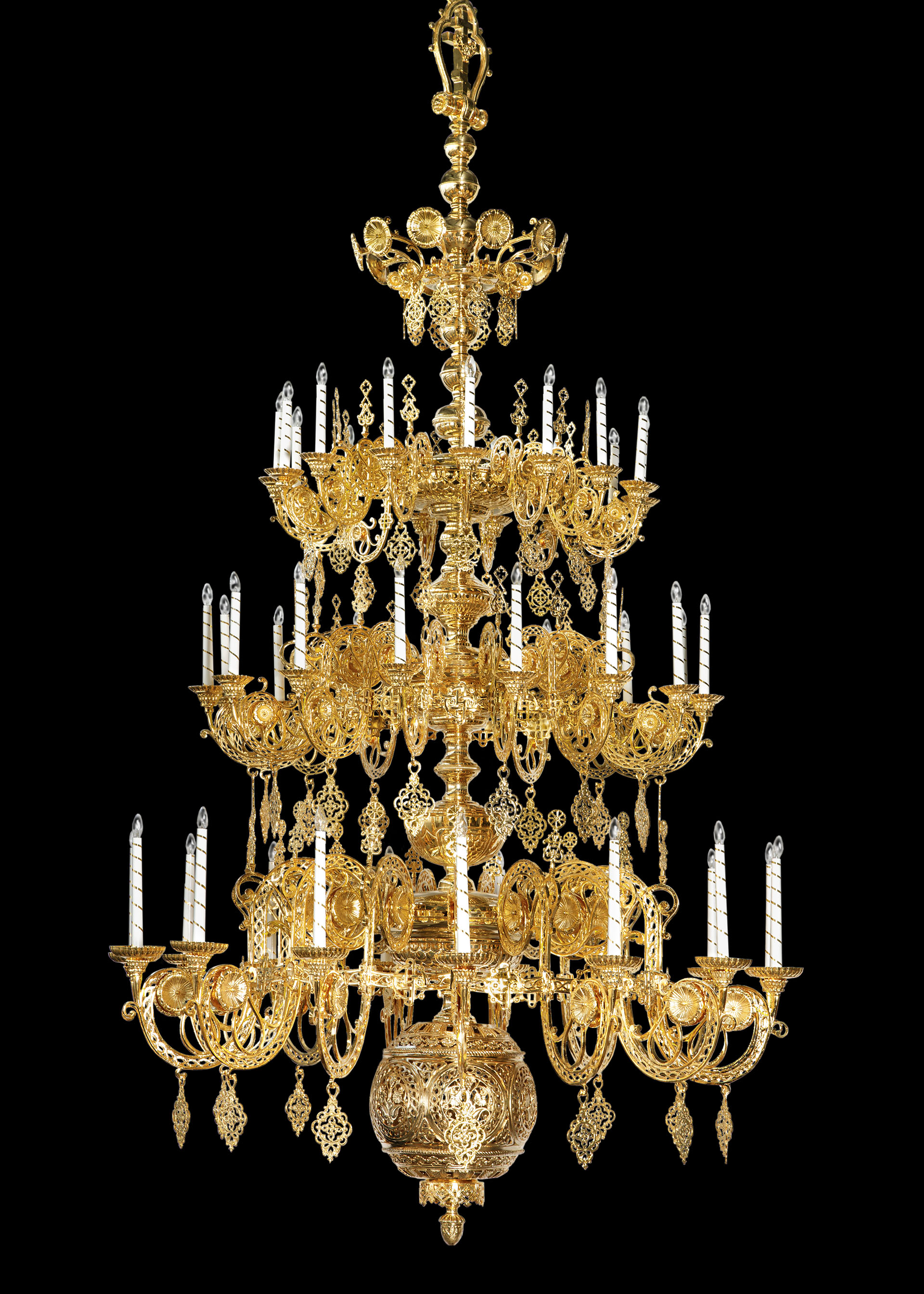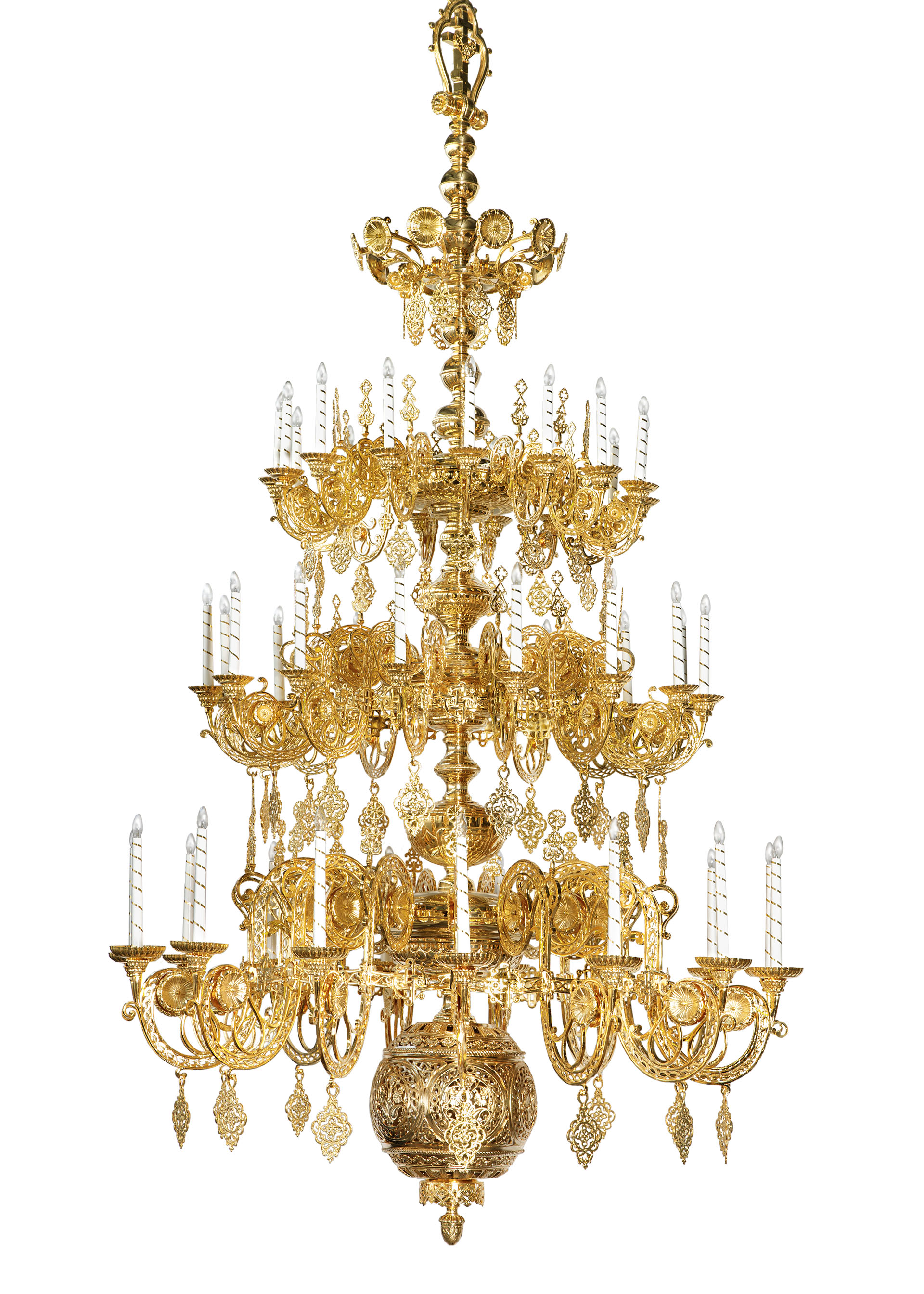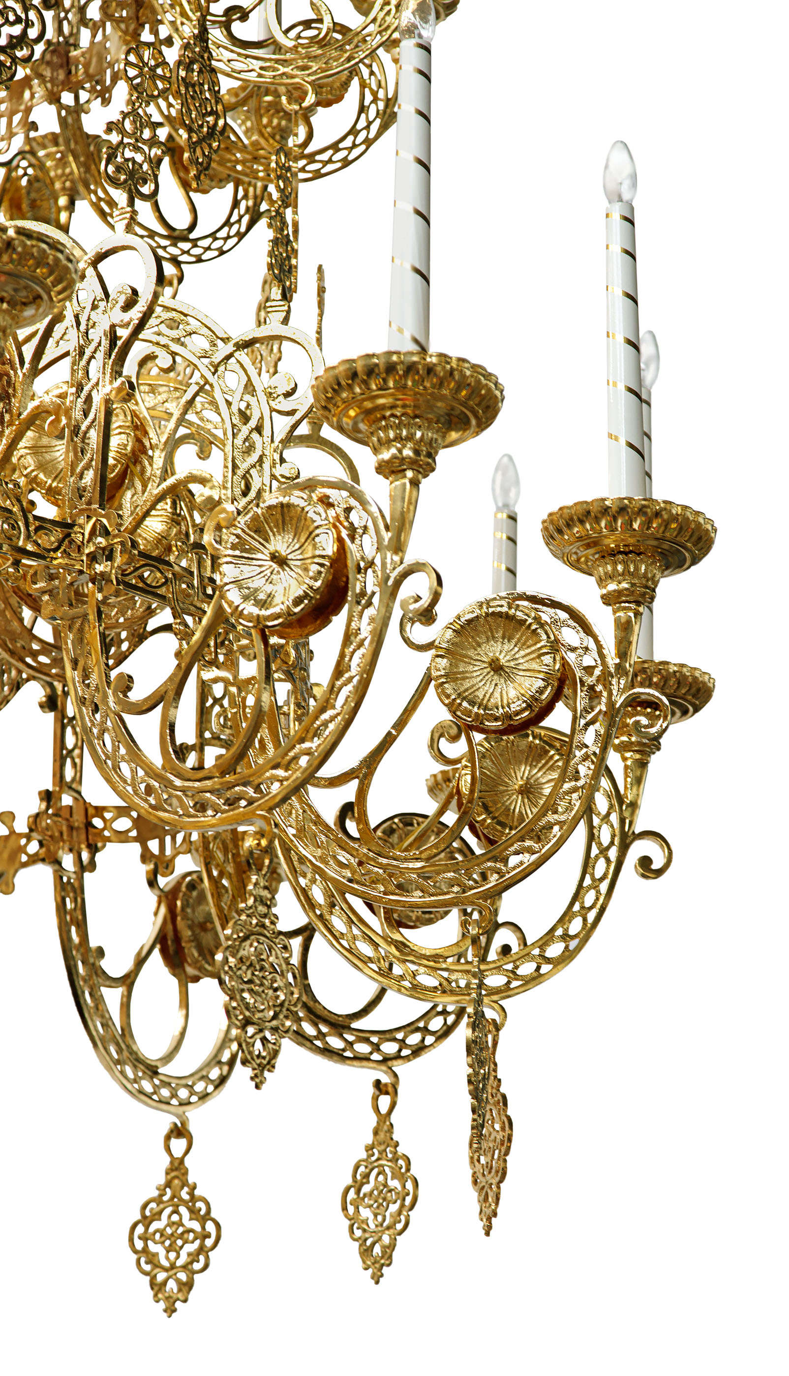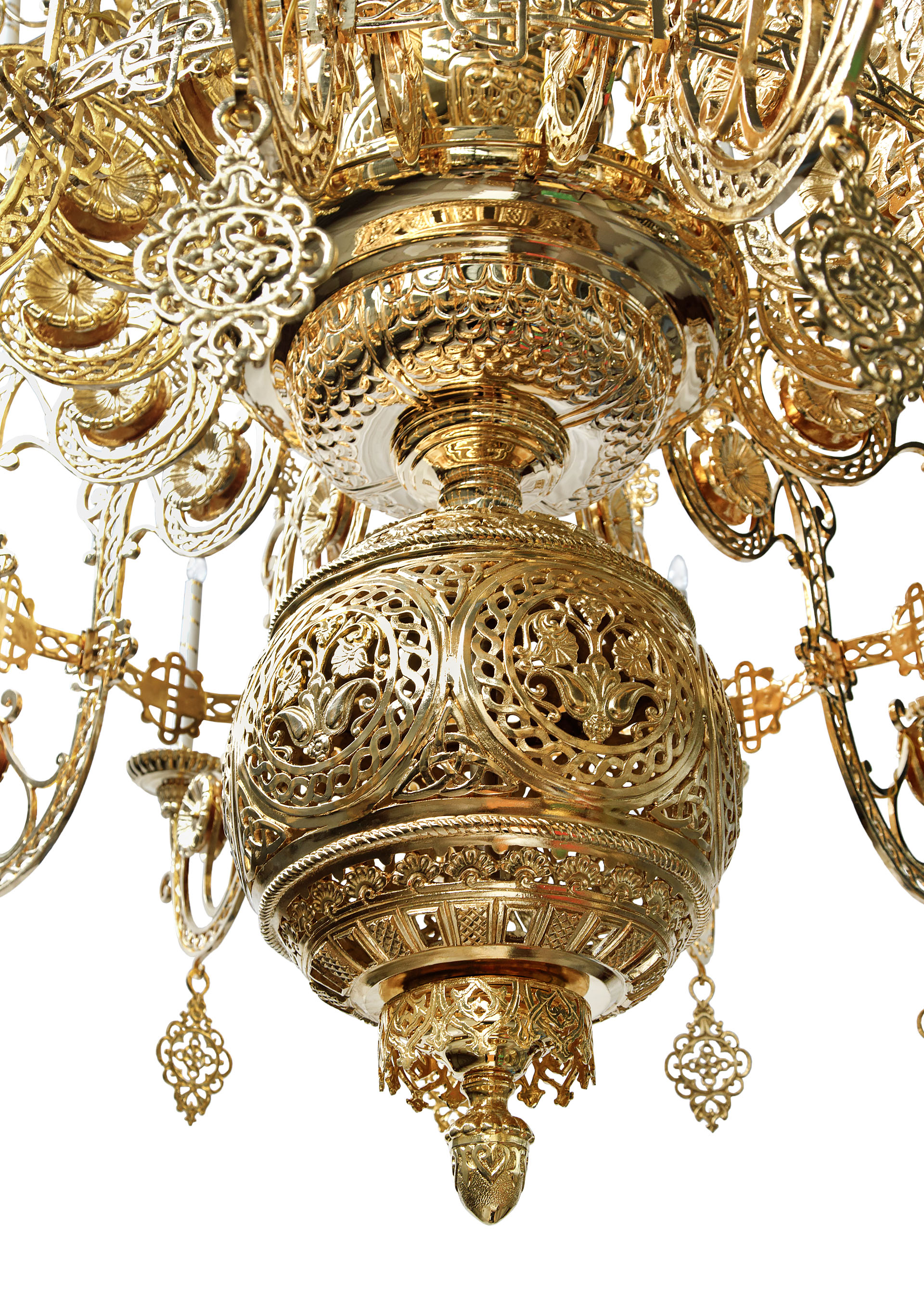 Стоимость паникадила с позолоченными свечами рассчитывается при заказе.