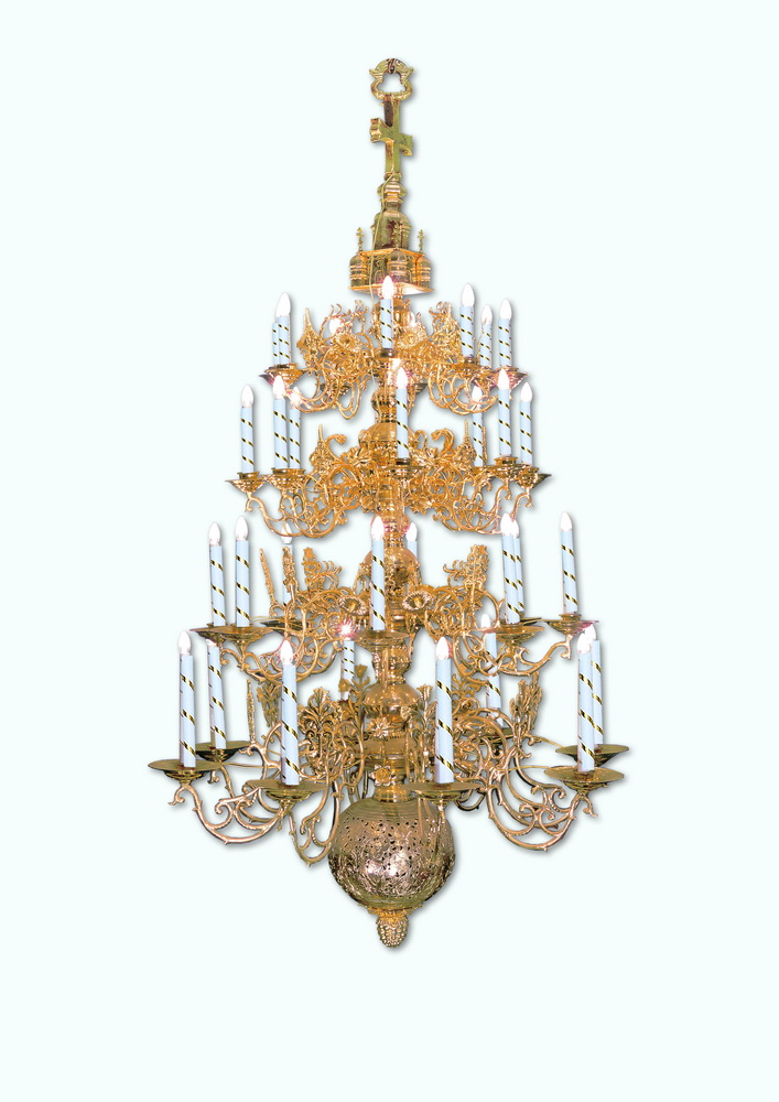 Стоимость паникадила с позолоченными свечами рассчитывается при заказе.