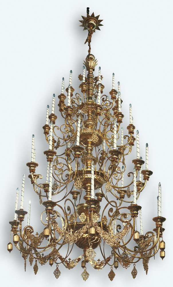 Стоимость паникадила с позолоченными свечами рассчитывается при заказе.
