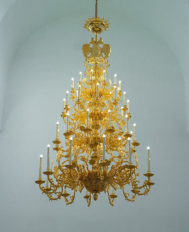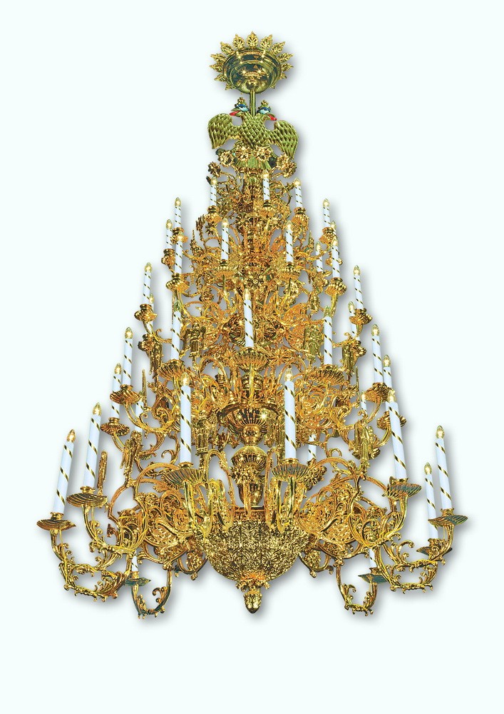 Стоимость паникадила с позолоченными свечами рассчитывается при заказе.