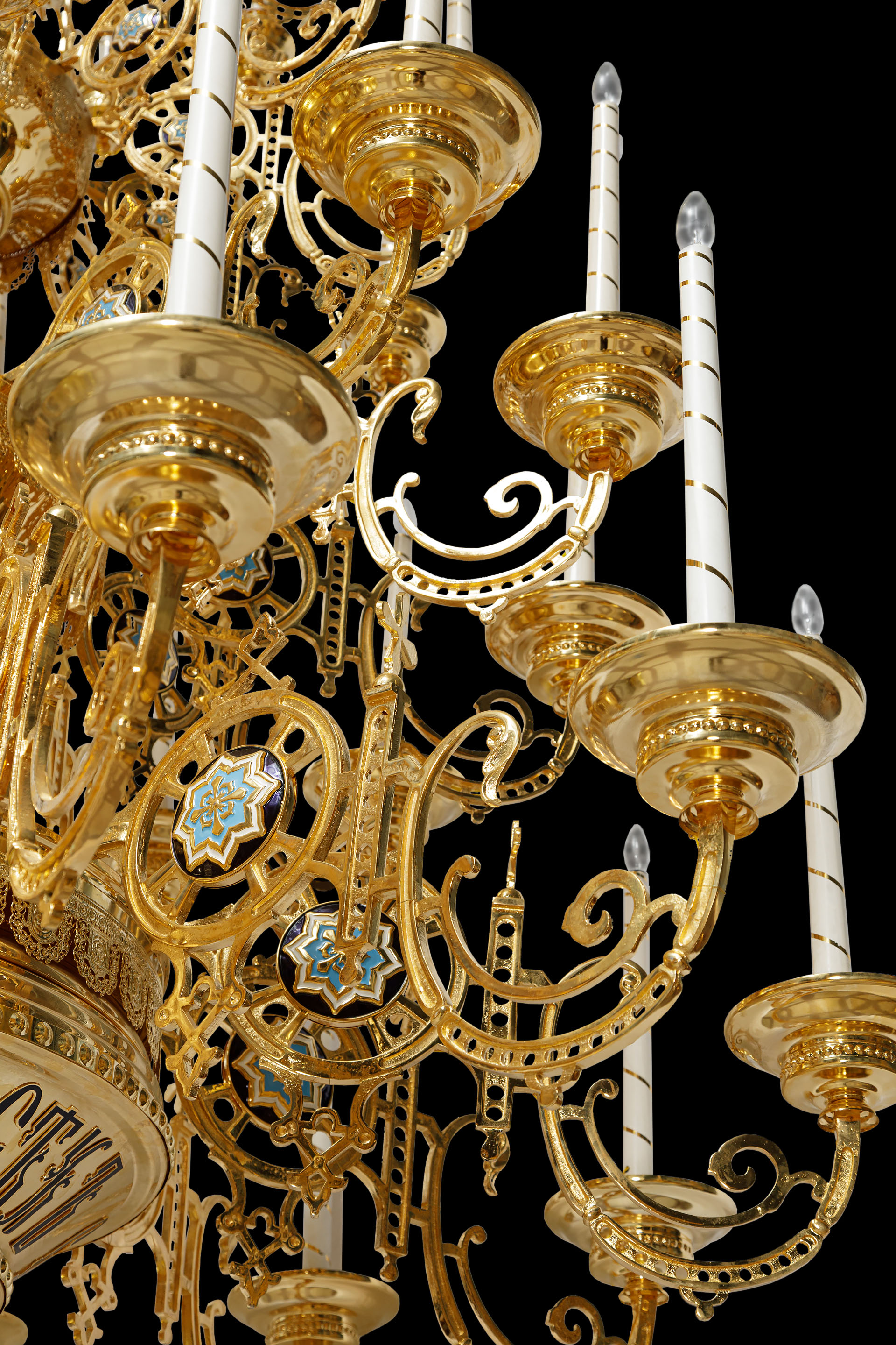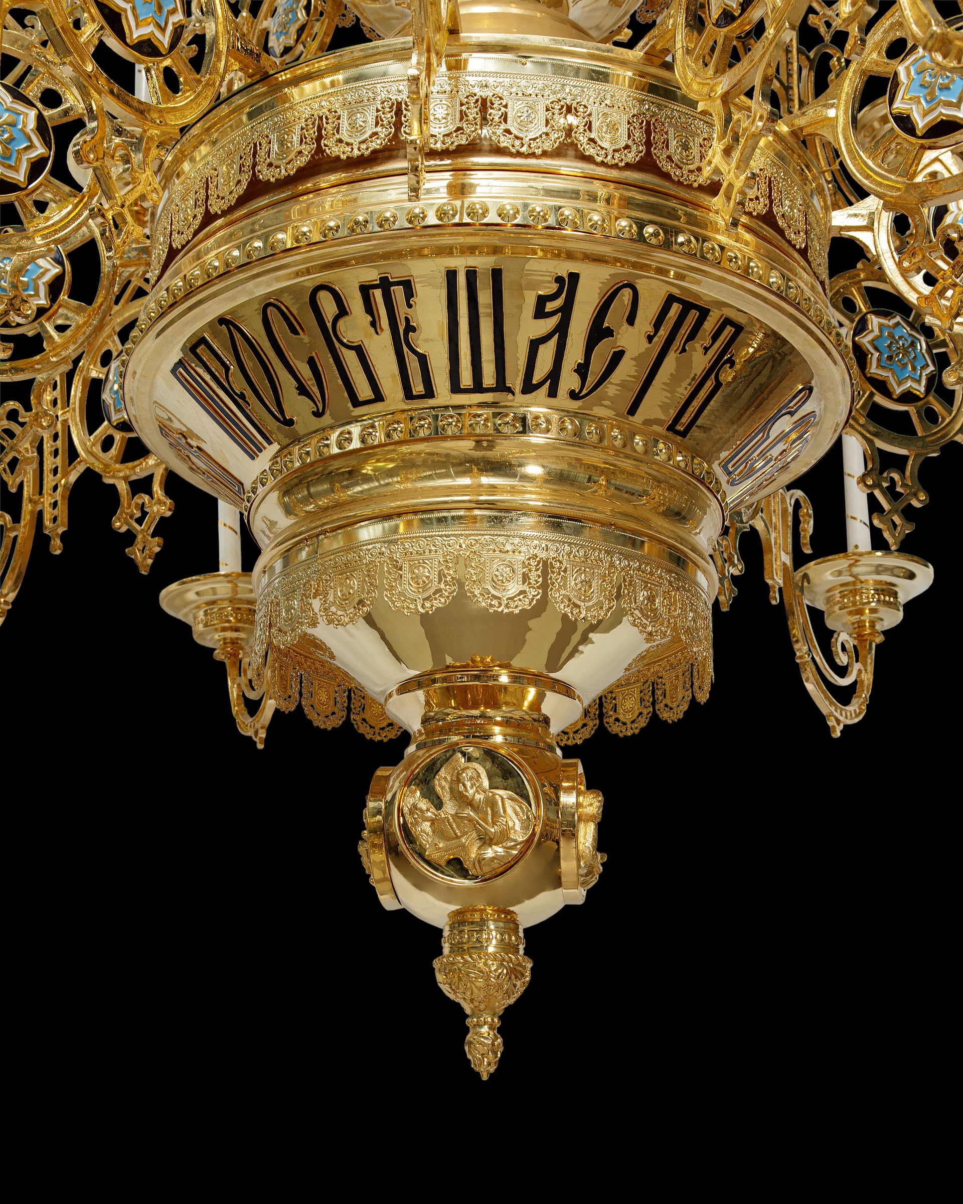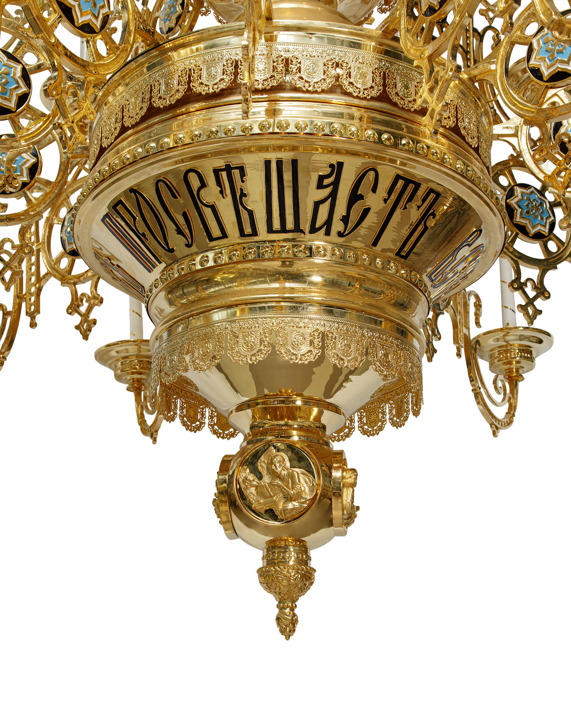 Стоимость паникадила с позолоченными свечами рассчитывается при заказе.