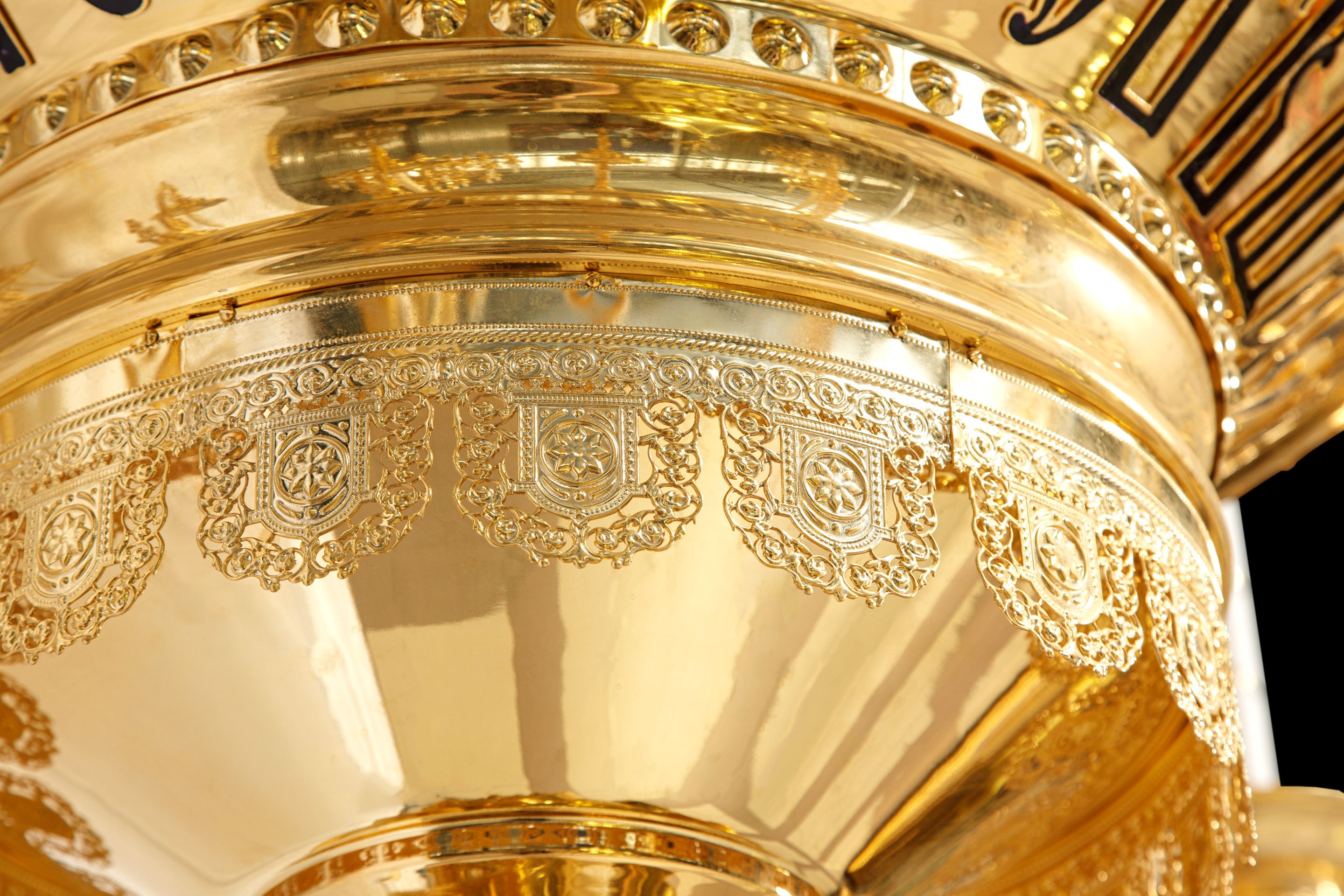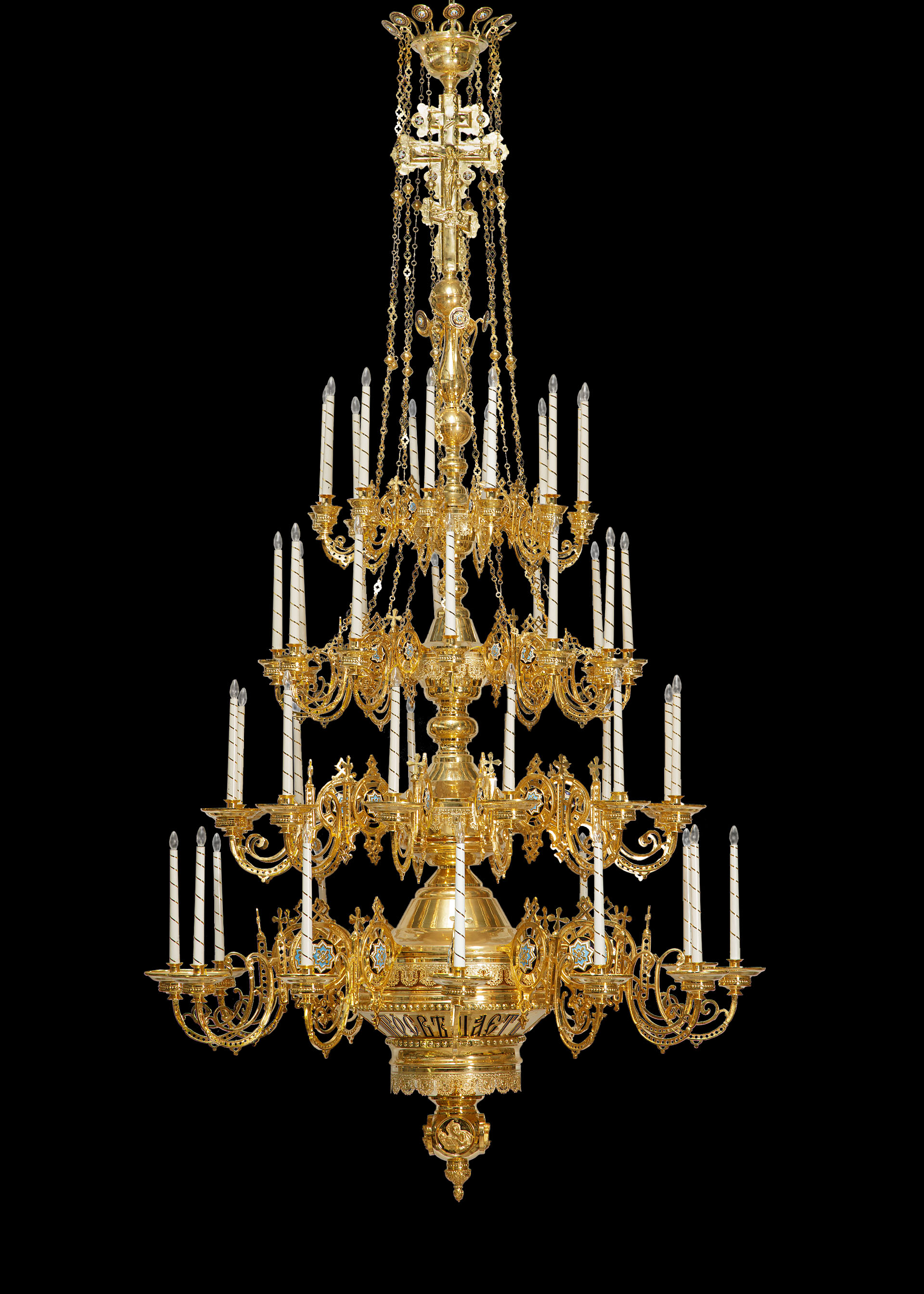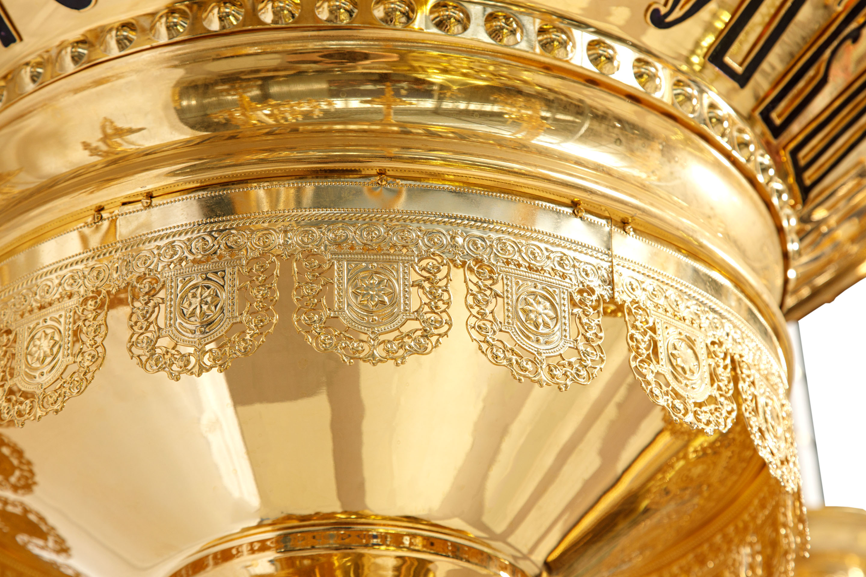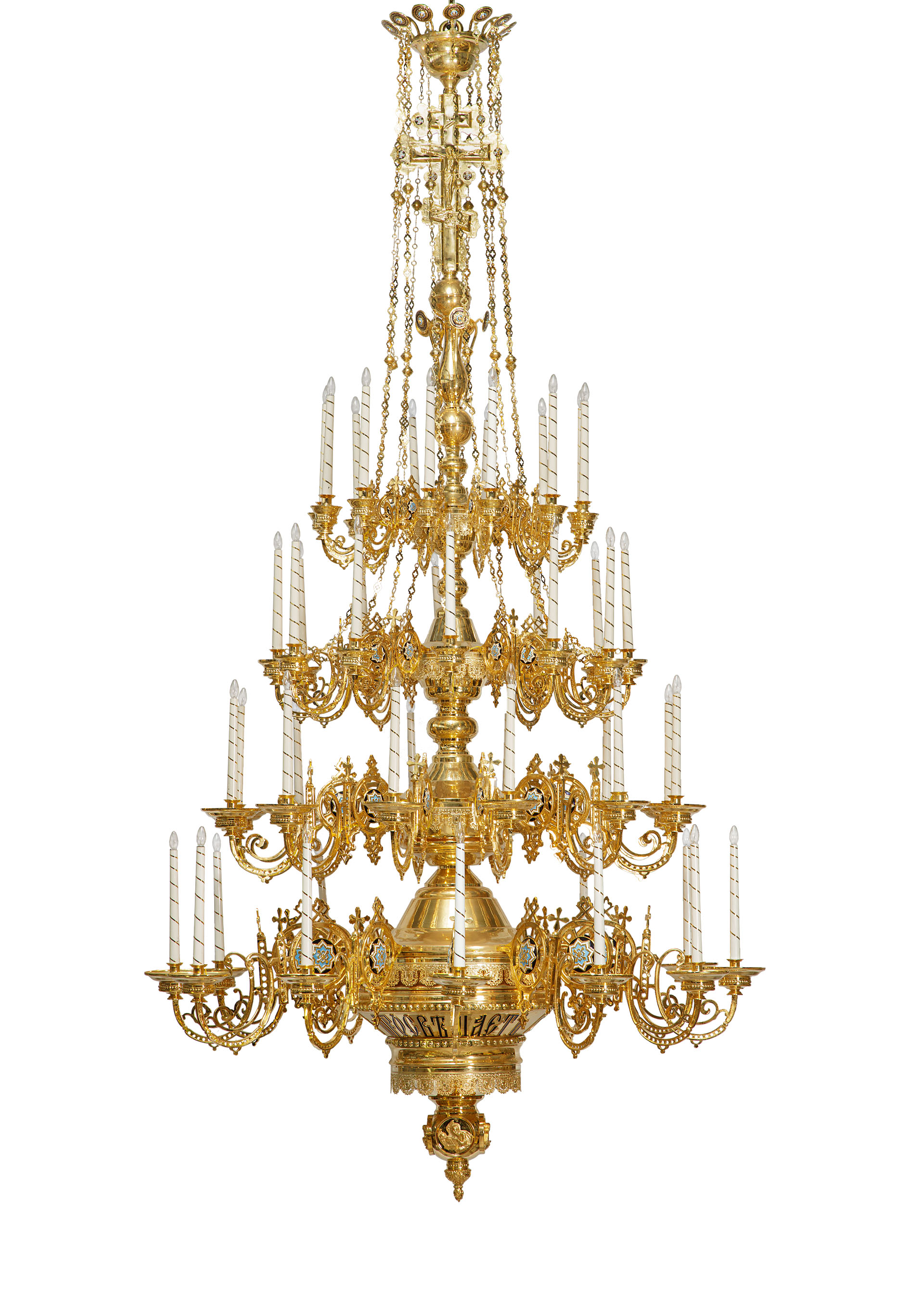 Стоимость паникадила с позолоченными свечами рассчитывается при заказе.