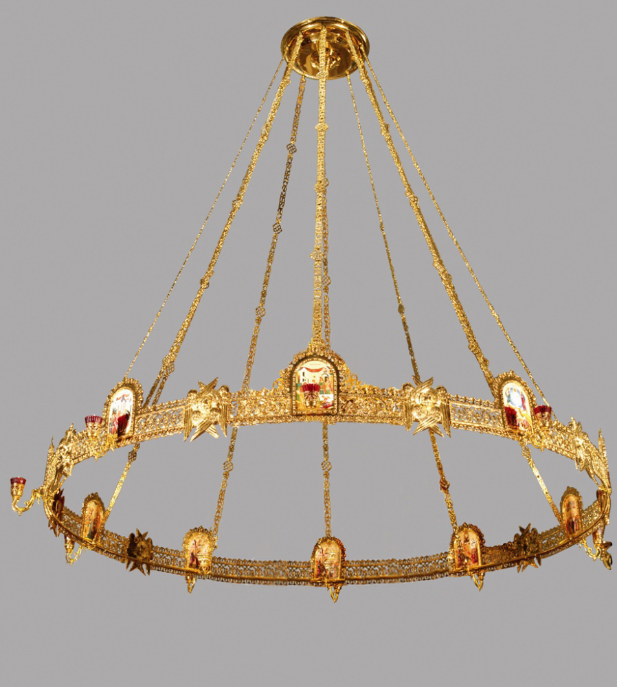 Стоимость паникадила с позолоченными свечами рассчитывается при заказе.