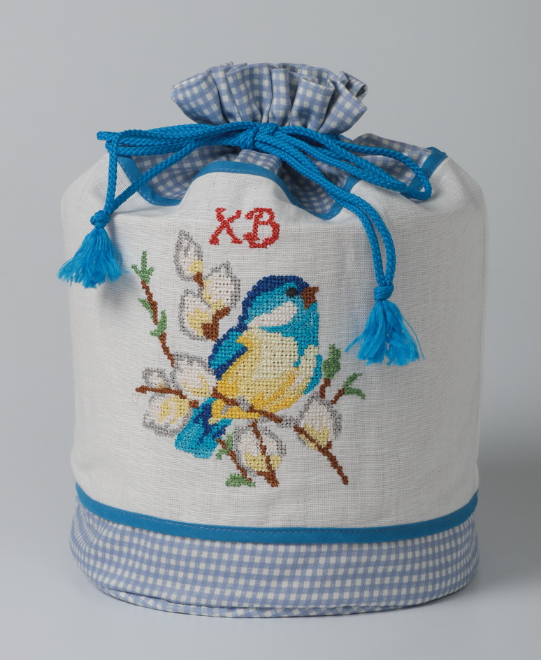 Пасхальный мешок выполнен и хловковой и льняной ткани.