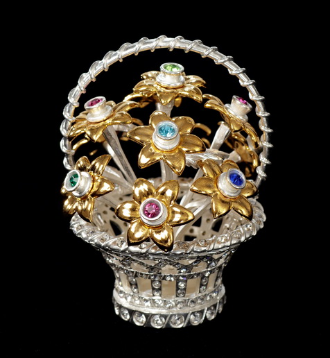 Пасхальный сувенир "Корзина с цветами" / золочение, серебрение