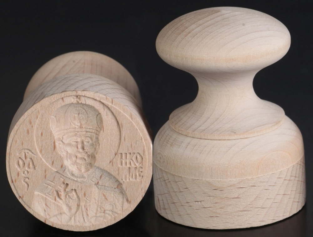 Диаметр 50 мм, материал: оттиск бук, ручка липа.