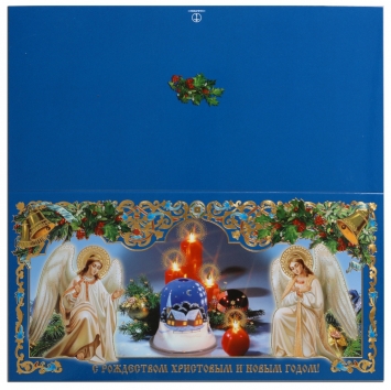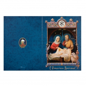 Открытка церковная двойная большого формата 4+0 тиснение "Рождество Христово" №17