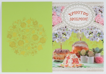 Открытка церковная двойная среднего формата 4+0 тиснение, конгрев "Воскресение Христово" №2