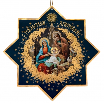 Открытка церковная двойная большого формата 4+0 тиснение "Рождество Христово" №19