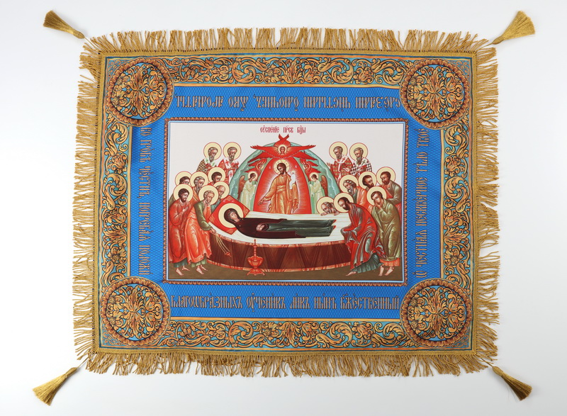 Плащаница малая, изготовлена из габардина. Отделочные элементы - печать, бахрома, кисти.