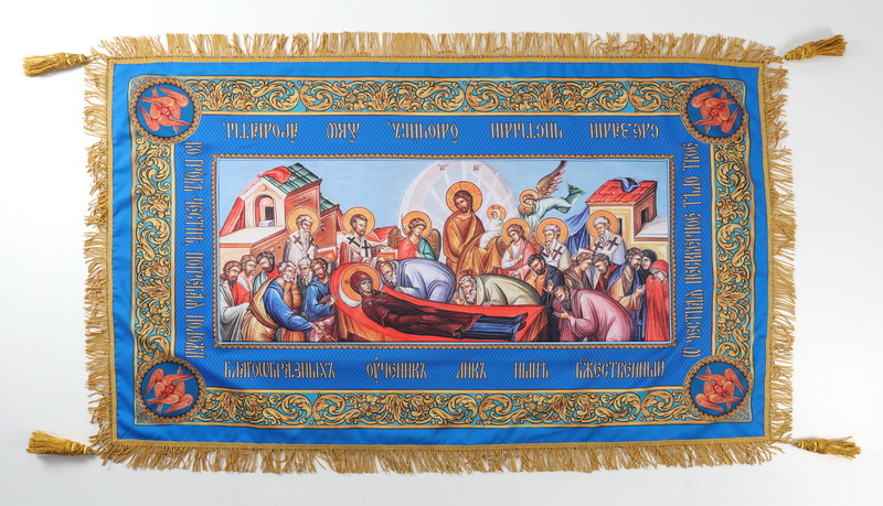 Плащаница выносная изготовлена из габардина, путем сублимационной печати по ткани.