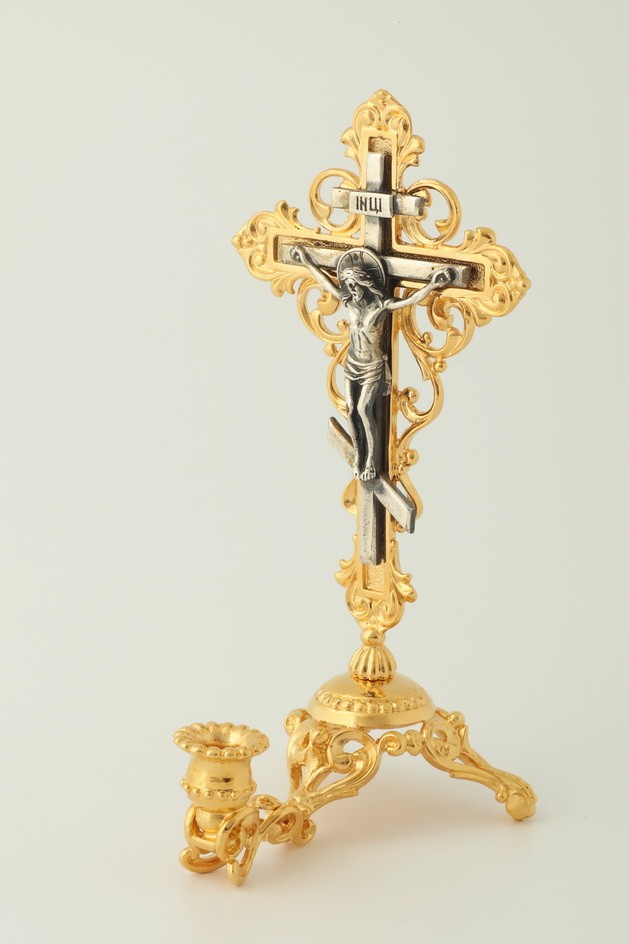 Подсвечник литьевой с распятием / золочение, серебрение