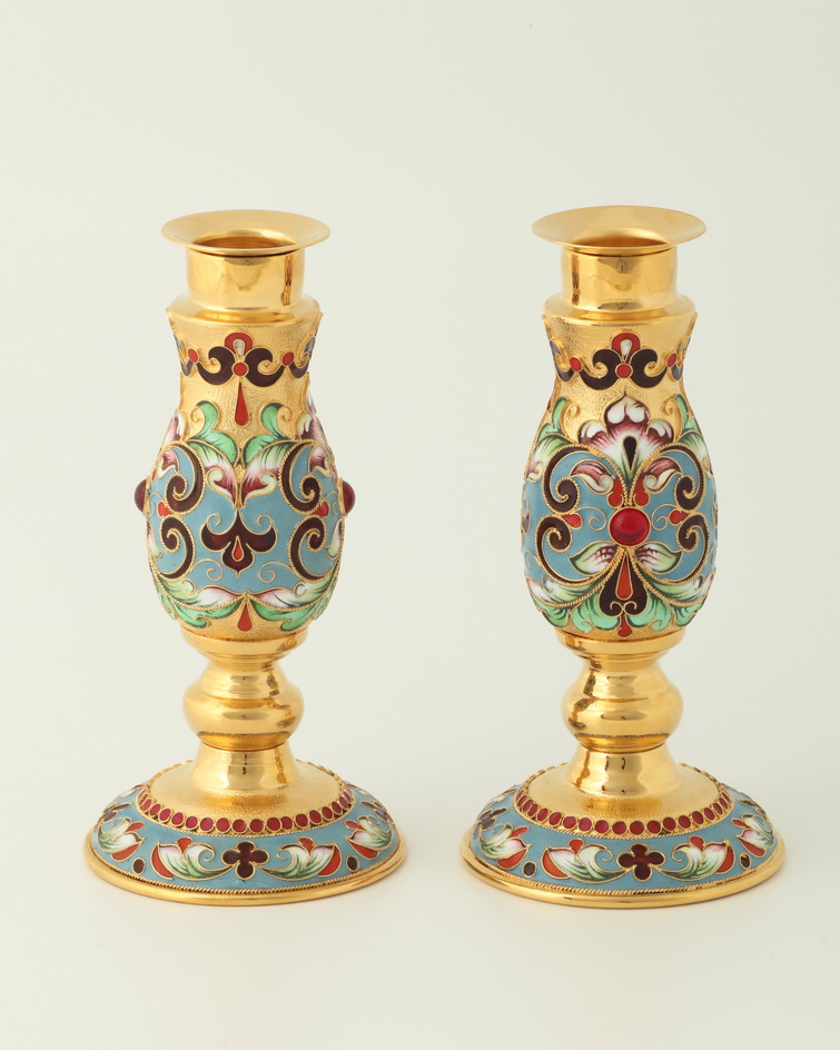 Подсвечник малый №1 / 2 свечи / роспись / золочение