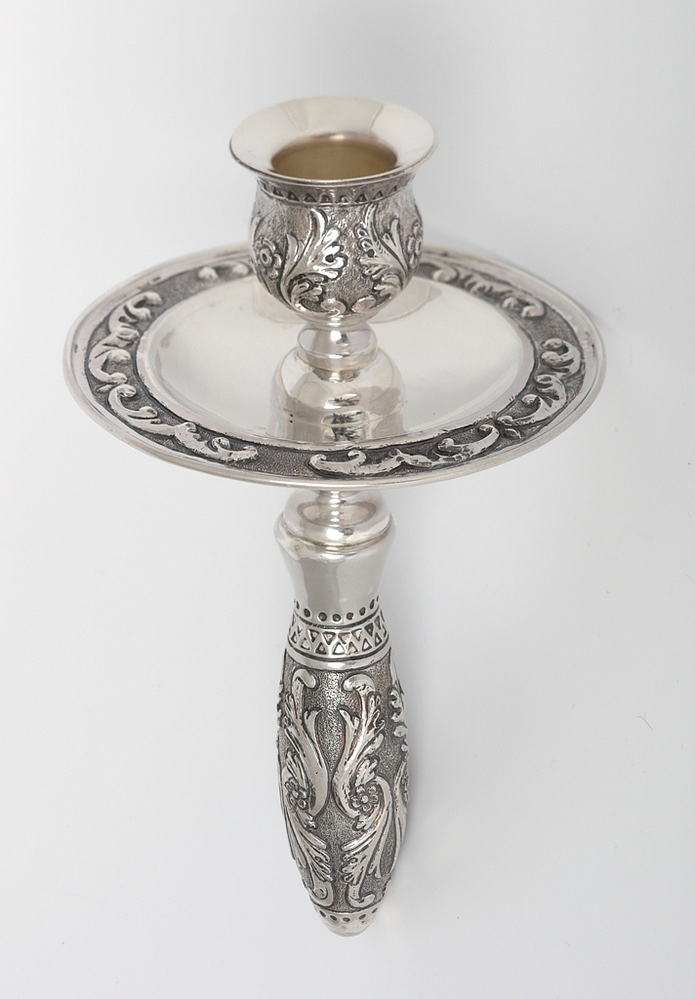 Подсвечник ручной №2 чеканный серебро (УИН)