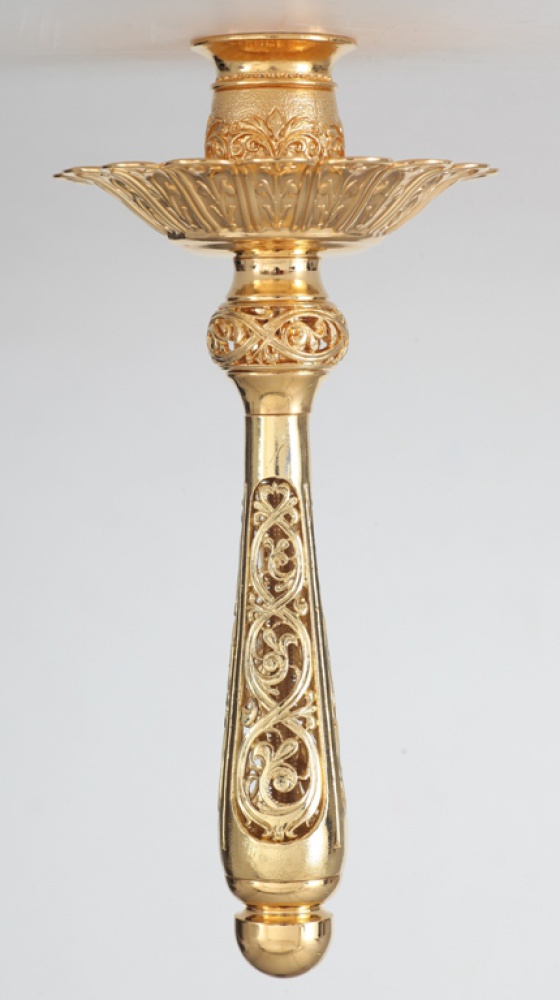Подсвечник ручной для служебной свечи литой №2 золочение