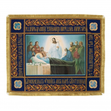 Плащаница малая бархат, сублимационная печать, холст Прес. Богородицы №1 синий