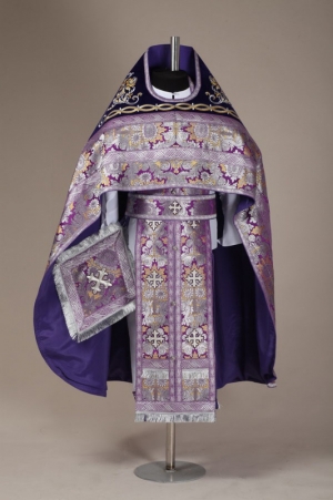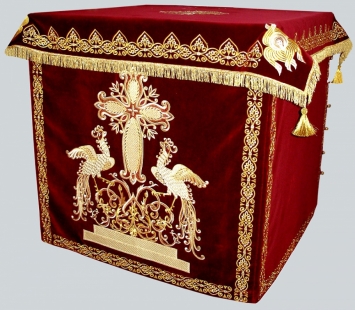 Салфетка церковная лен 220х150 + 6 салфеток 40х40 вышивка а\м