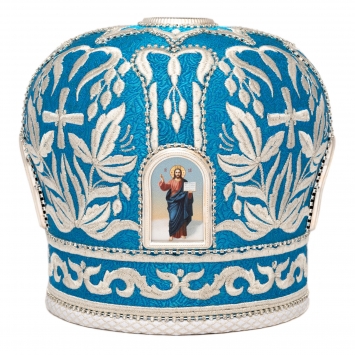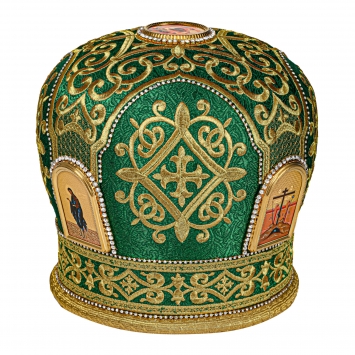 Митра ручная вышивка №539 глазет, 4 юв.рамки (типографское изображение), юв.крест, в футляре