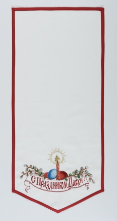 Салфетка церковная пасхальная вышитая лен овальная 28х38см (рисунок в ассортименте) №13